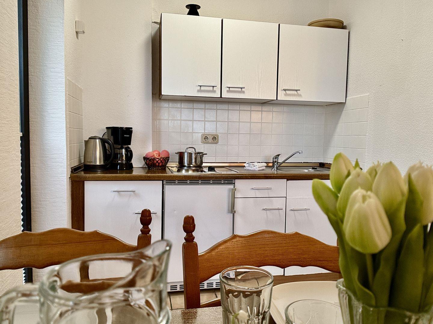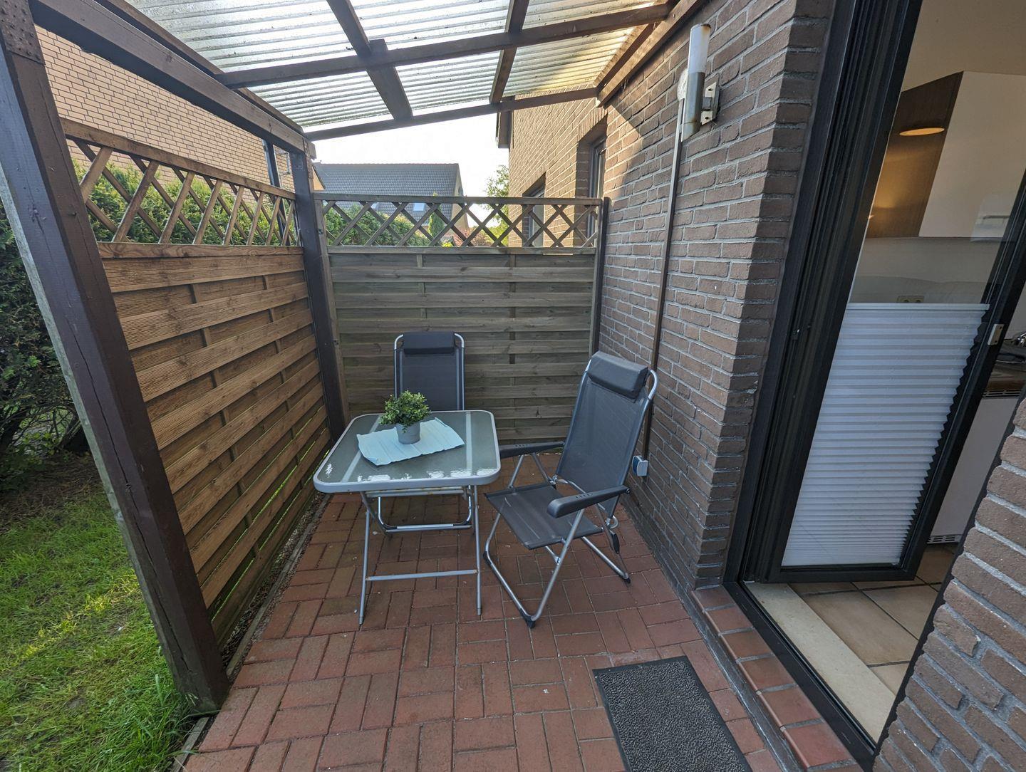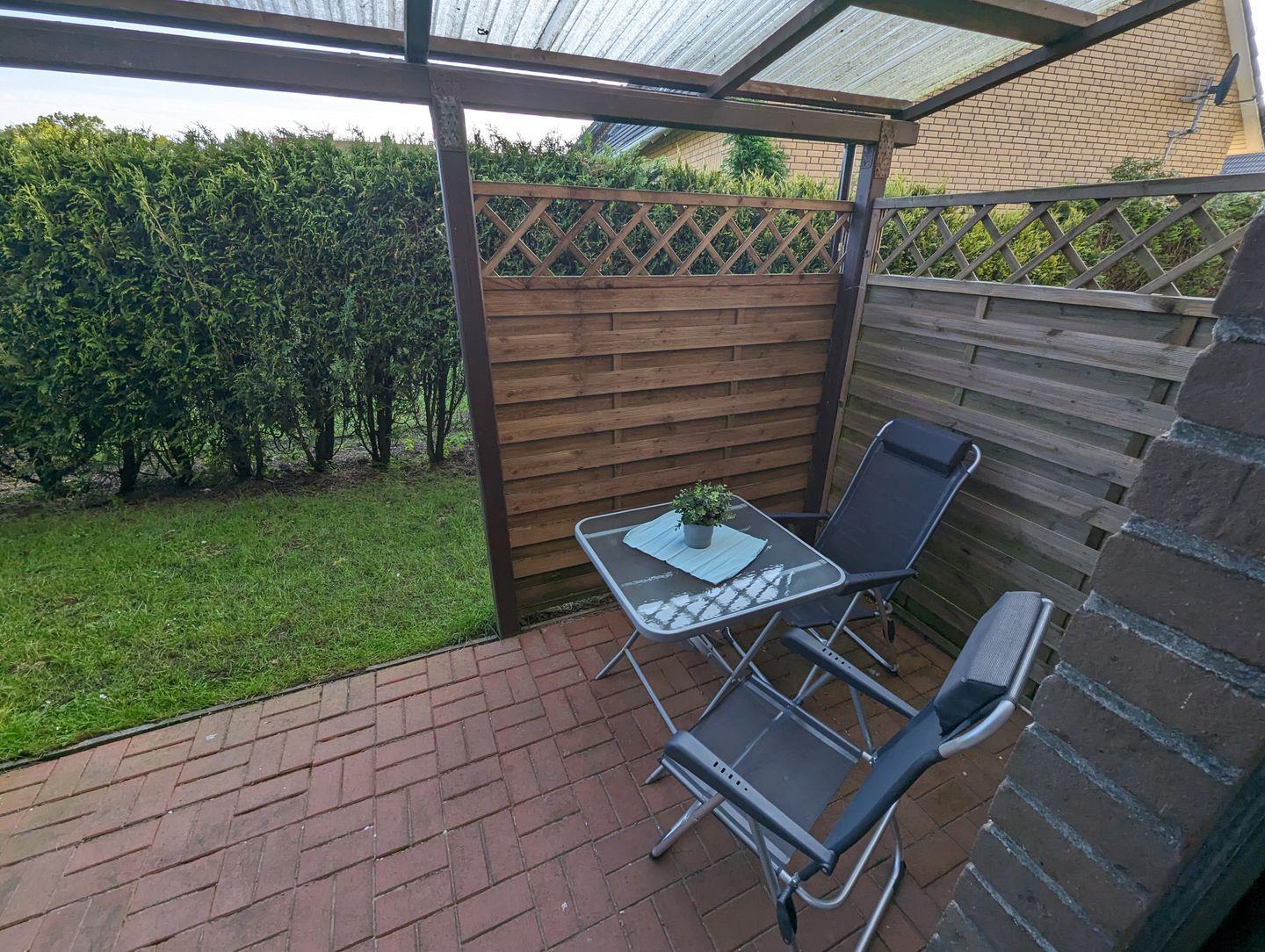 Dieses 47qm große Apartment im Erdgeschoss des Hauses Vogel, das noch fünf weitere Unterkünfte bietet, besticht durch seinen schönen kleinen Gartenanteil und eine überdachte Terrasse.