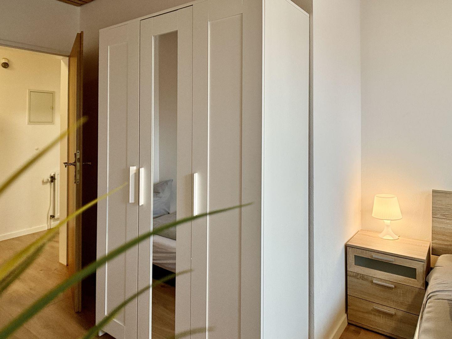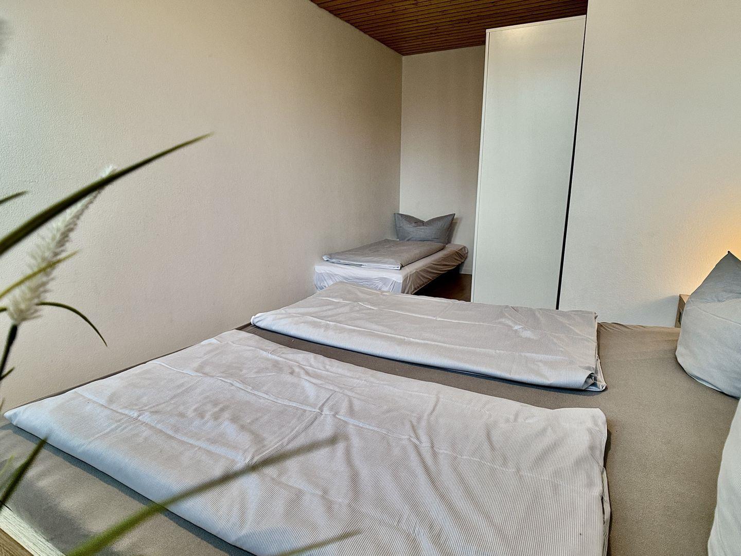 Die Essecke lädt zu geselligen Mahlzeiten ein, wo Sie die lokalen Köstlichkeiten genießen und Erinnerungen mit Ihren Liebsten teilen können. Im geräumigen Schlafzimmer erwartet Sie ein erholsamer Schlaf in einem gemütlichen Doppelbett und einem zusätzlichen Zustellbett, das Platz für insgesamt drei Personen bietet. Ein Kleiderschrank steht ebenfalls zur Verfügung, um Ihre Kleidung ordentlich zu verstauen.