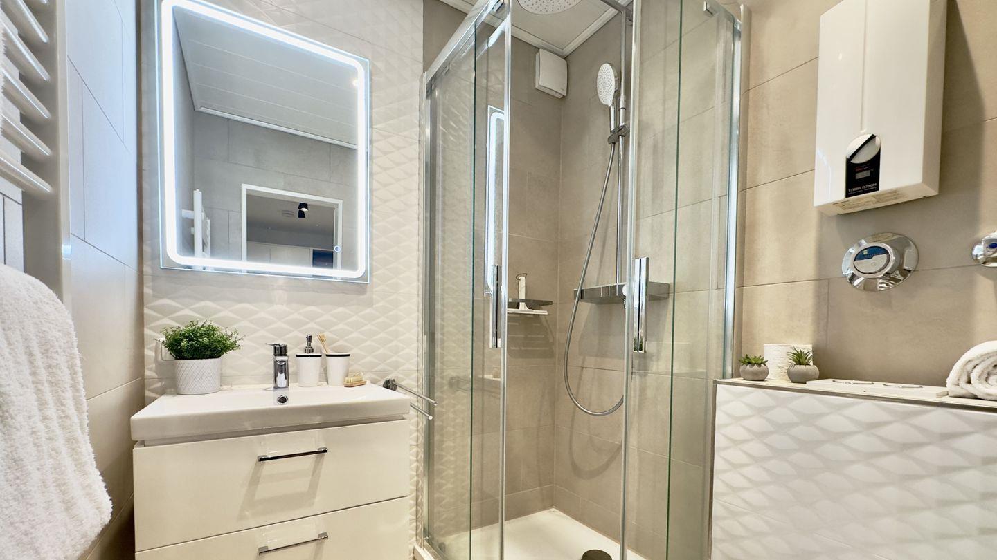 Das moderne Badezimmer mit geschmackvoller Fliesenauswahl schafft eine angenehme Atmosphäre, und der wunderschöne Balkon ist der perfekte Ort, um den Tag bei einem gemütlichen Frühstück oder beim Sonnenbaden zu genießen.
