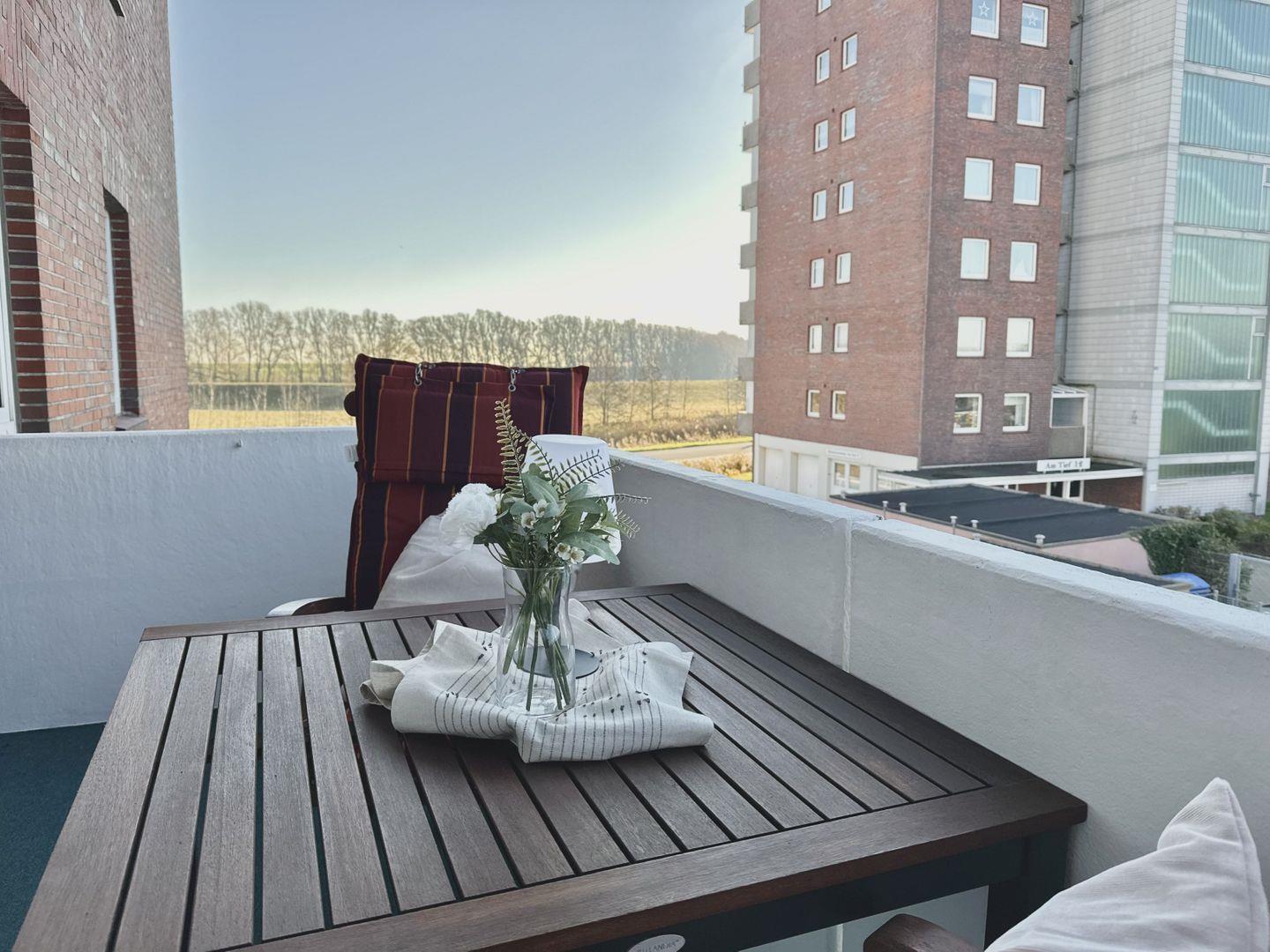 Erleben Sie erholsame Tage in der Ferienwohnung Nordseeglanz im Herzen von Horumersiel! Auf 39 qm finden bis zu 4 Personen Platz, mit einem wunderschönen Balkon, der einen herrlichen Blick über den Ort bietet.