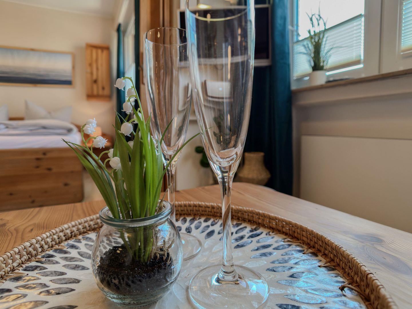 Die kleine, aber feine Kochnische ist ideal für Selbstversorger ausgestattet. Ein kleiner Backgrill ermöglicht Ihnen das Aufbacken frischer Brötchen oder die Zubereitung kleiner Köstlichkeiten. Hier finden Sie alles, was Sie für Ihren Aufenthalt brauchen.