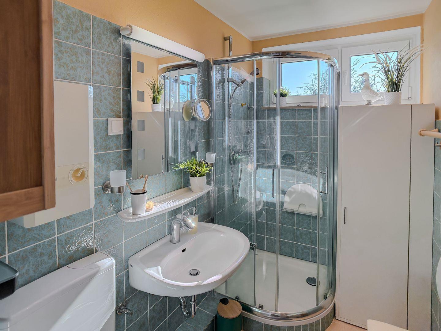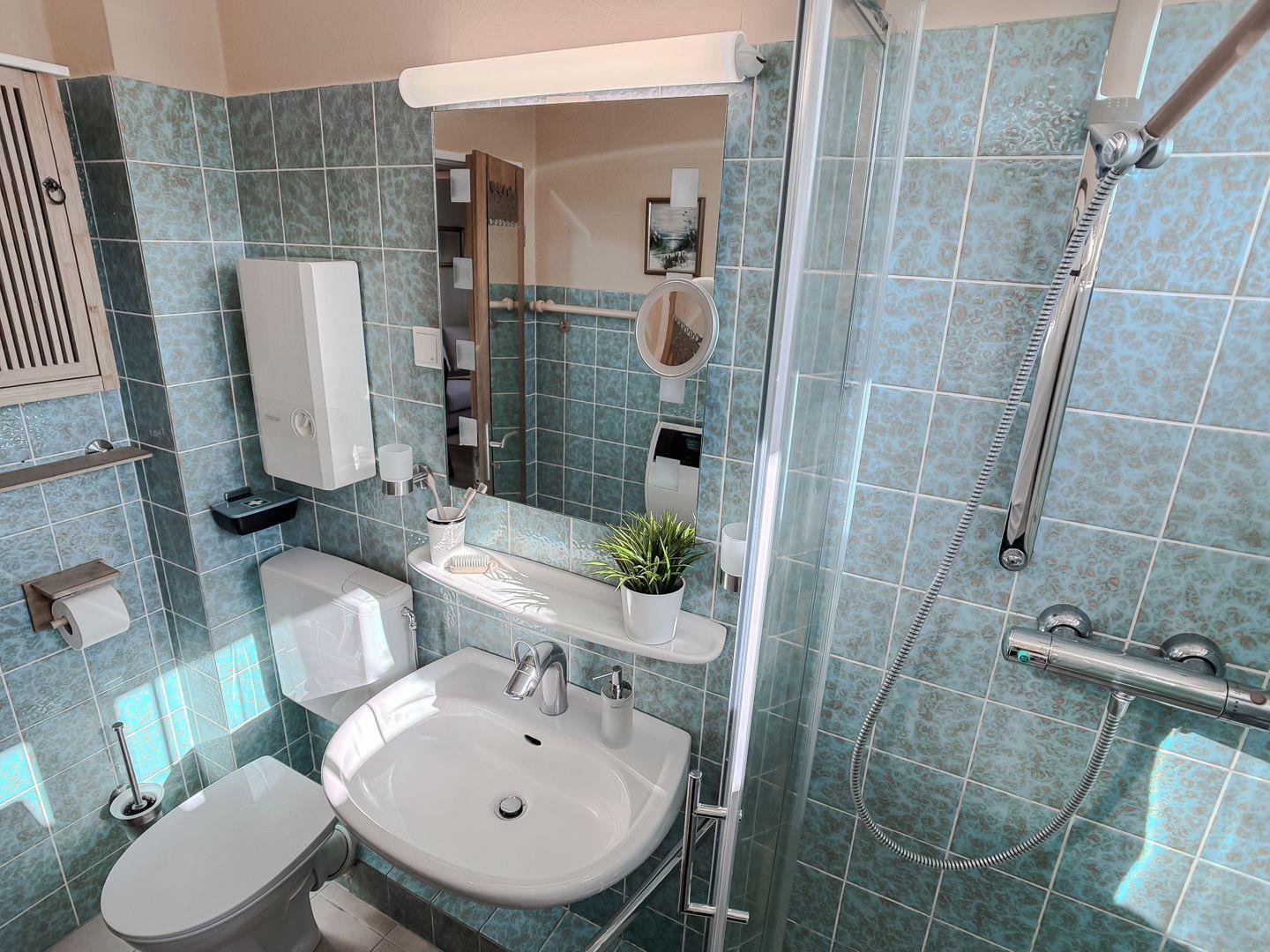 Das helle Tageslichtbad ist modern und funktional gestaltet, sodass Sie sich rundum wohlfühlen können. Außenrollläden in allen Räumen sorgen für angenehme Verdunklung und Privatsphäre.