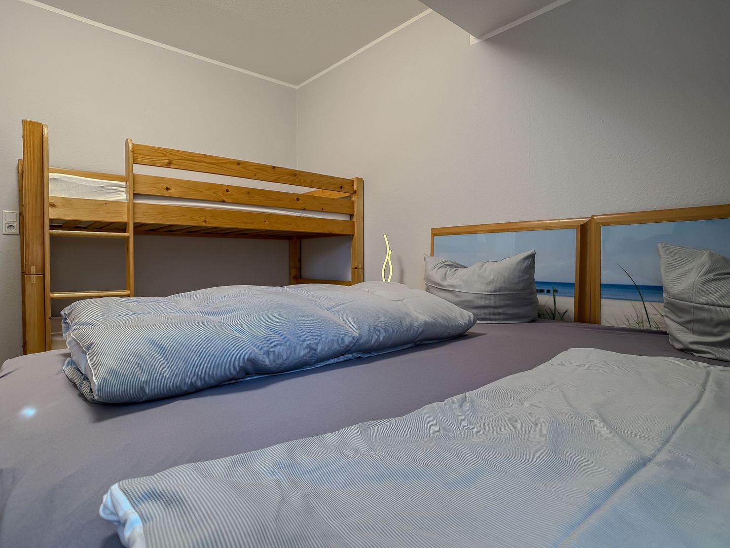 – Im zweiten Schlafzimmer erwartet Sie ebenfalls ein Doppelbett sowie ein praktisches Etagenbett – sowie eine klappbare Wickelauflage – ideal für Familien mit Baby. Her finden bis zu 4 Personen bequem Platz.