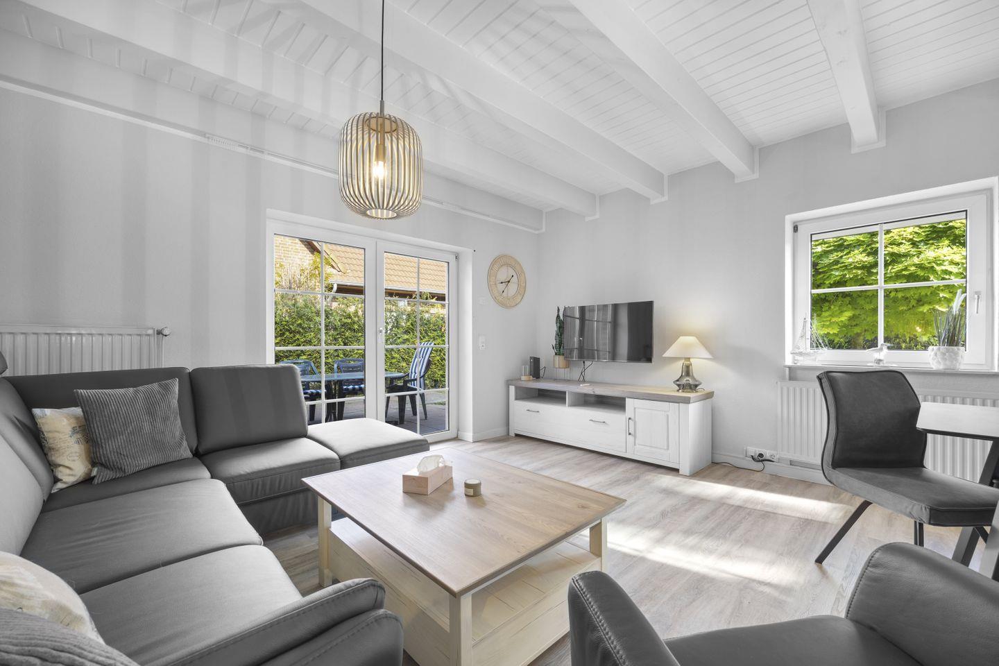 Entdecken Sie das gemütliche Ferienhaus Leuchtfeuer in Wangerland! Mit einer großzügigen Fläche von 75 m² bietet es komfortabel Platz für Ihre Familie oder Freunde. Genießen Sie den eigenen Garten mit Terrasse, ideal für entspannte Stunden unter freiem Himmel. Die moderne Küche und der einladende Essbereich sorgen für kulinarische Highlights. Zur Ausstattung gehören WLAN, TV, Waschmaschine und vieles mehr.