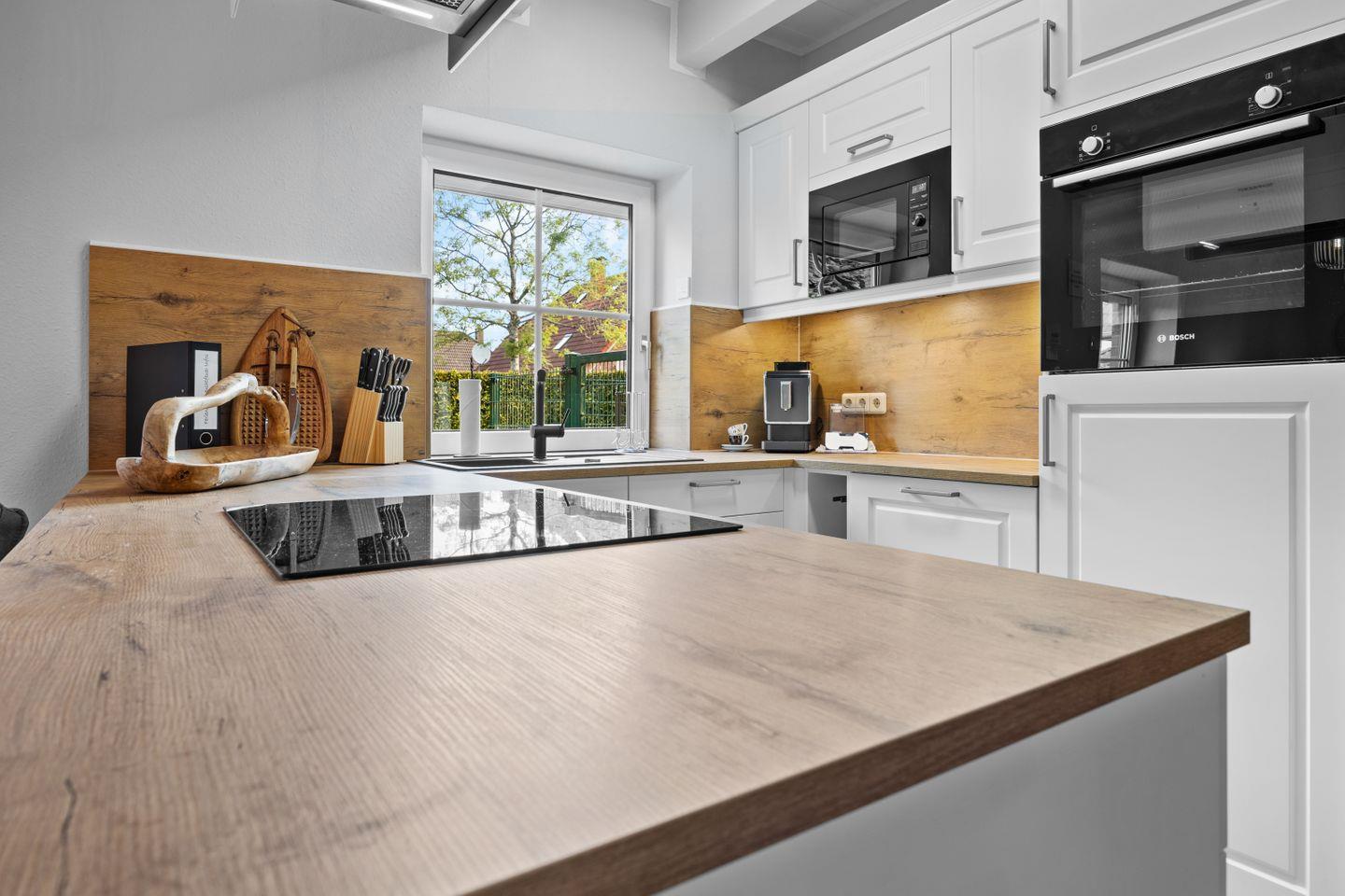 Das Haus verfügt über einen lichtdurchfluteten Wohnbereich, der eine angenehme Atmosphäre schafft, sowie eine moderne Einbauküche, die mit allen notwendigen Geräten ausgestattet ist. Zwei komfortable Schlafzimmer und ein modernes Badezimmer sorgen für ein hohes Maß an Wohnkomfort. Ein separates Gäste-WC erhöht die Funktionalität des Hauses zusätzlich. Ein eigener PKW-Stellplatz sowie ein Schuppen mit angrenzender Terrasse runden das Angebot ab.