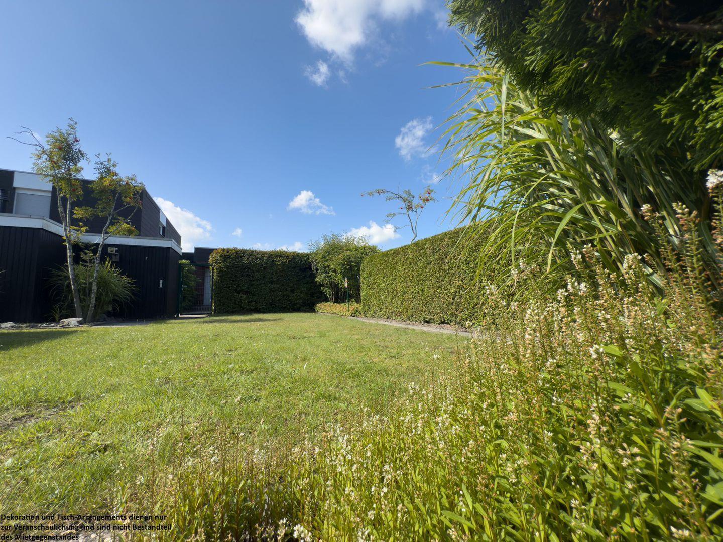 Der grüne Garten mit Terrasse, Möbeln und Elektrogrill lädt zum Entspannen ein. Nur wenige Schritte vom Strand entfernt – hier beginnt Ihr Urlaubsglück!