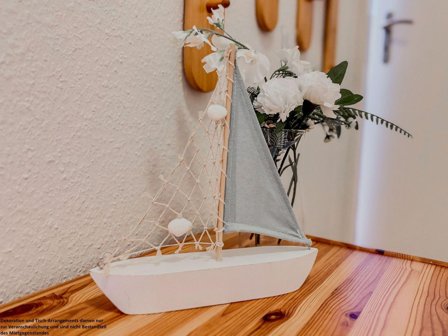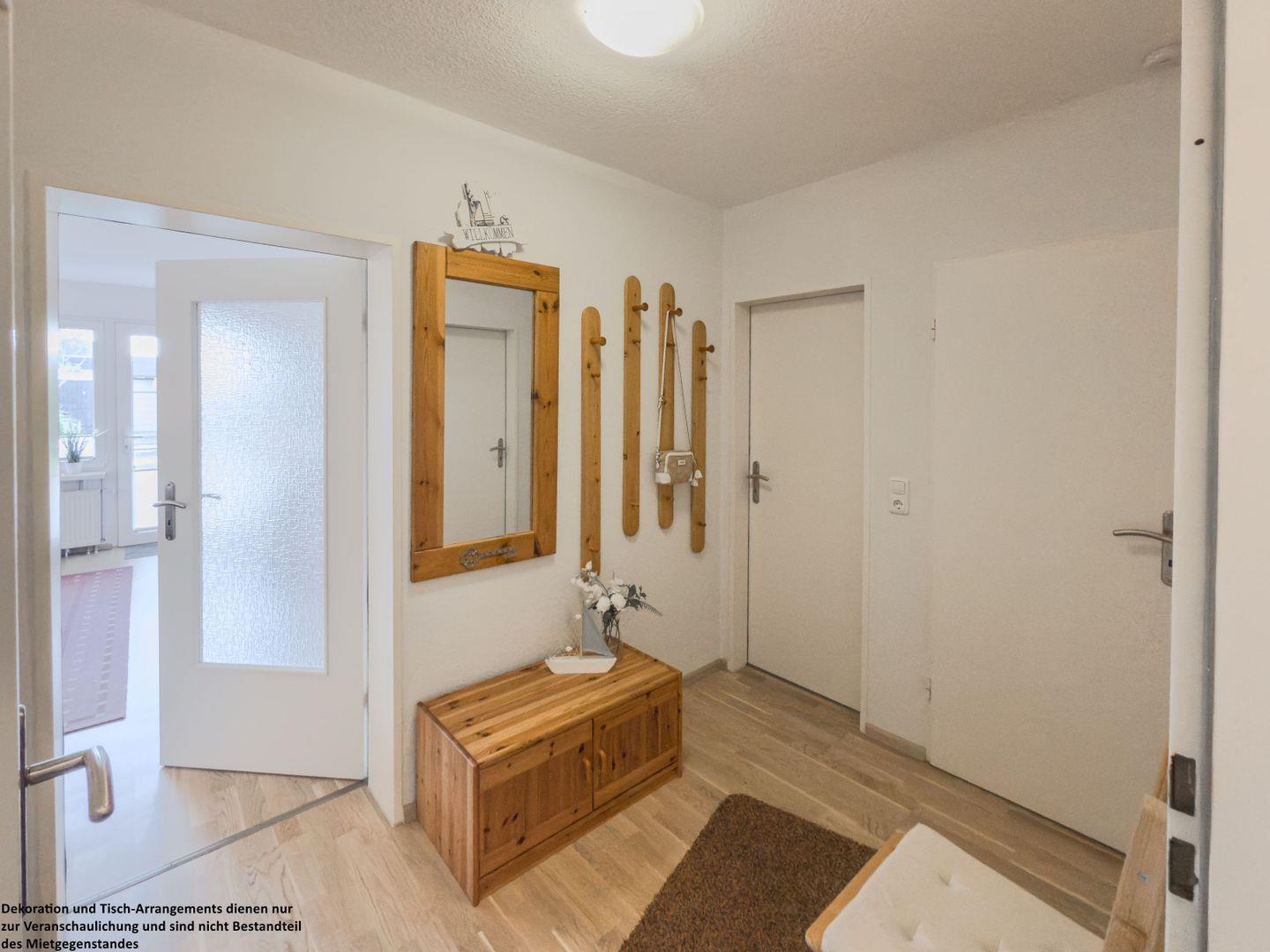 Schon beim Betreten empfängt Sie ein freundlicher Flur: eine Garderobe für Jacken, ein Schuhschrank für Ihre Lieblingsschuhe und ein großer Ganzkörperspiegel, in dem Sie sich noch einmal betrachten können, bevor Sie zu einem Strandspaziergang aufbrechen.