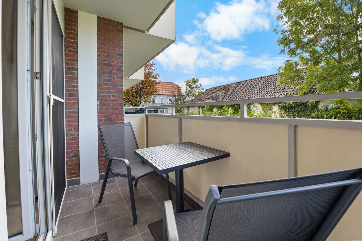 Ein Highlight ist der überdachte Balkon mit Gartenmöbeln – ideal, um den Tag bei einem Kaffee oder einem Glas Wein ausklingen zu lassen.