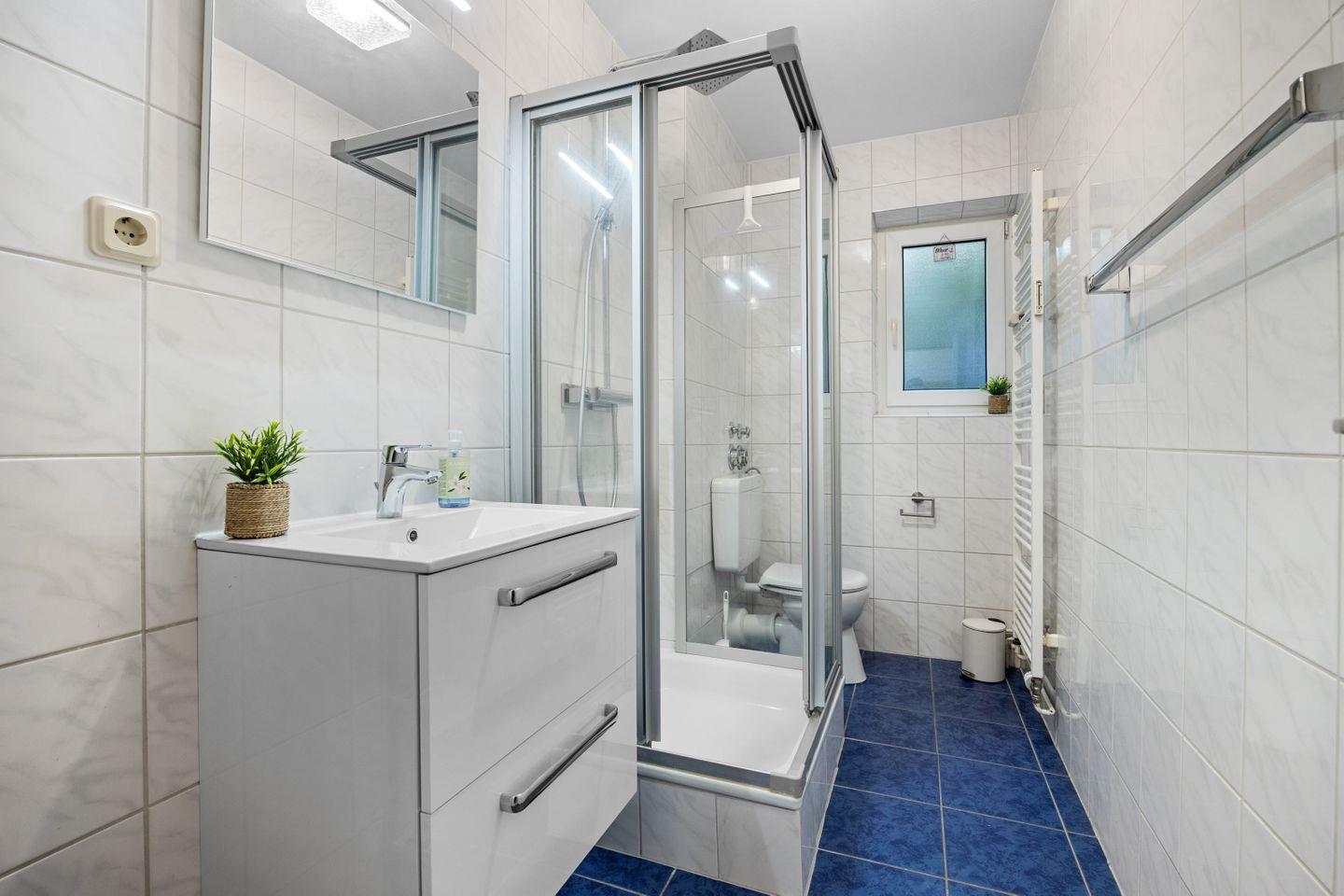 Im Bad finden Sie Dusche, Waschbecken, WC und Haartrockner. Alles ist praktisch und komfortabel eingerichtet.
