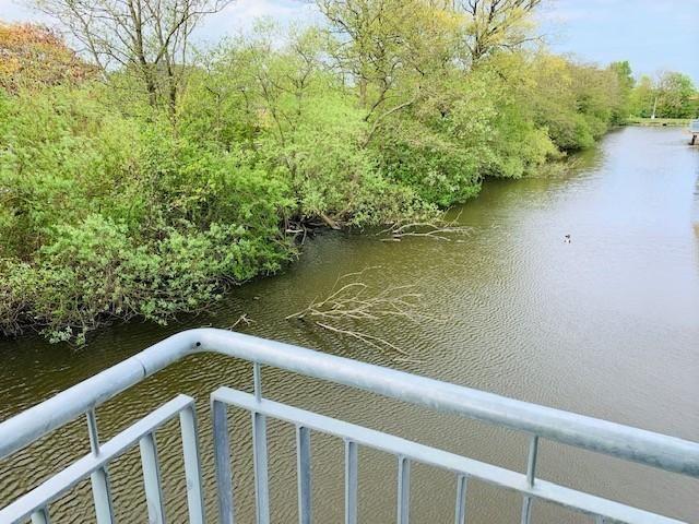Eine großzügiger, möblierter und überdachter Balkon, direkt über der Graft, lädt zum Verweilen ein. Ein Strandkorb rundet hier das friesische Bild ab.