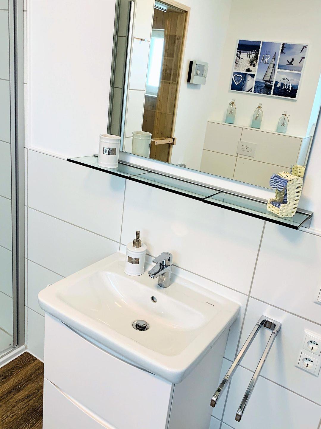 An stürmischen und/oder regnerischen Tagen wird das Badezimmer mit seiner Vollausstattung zum Wellnesstempel.