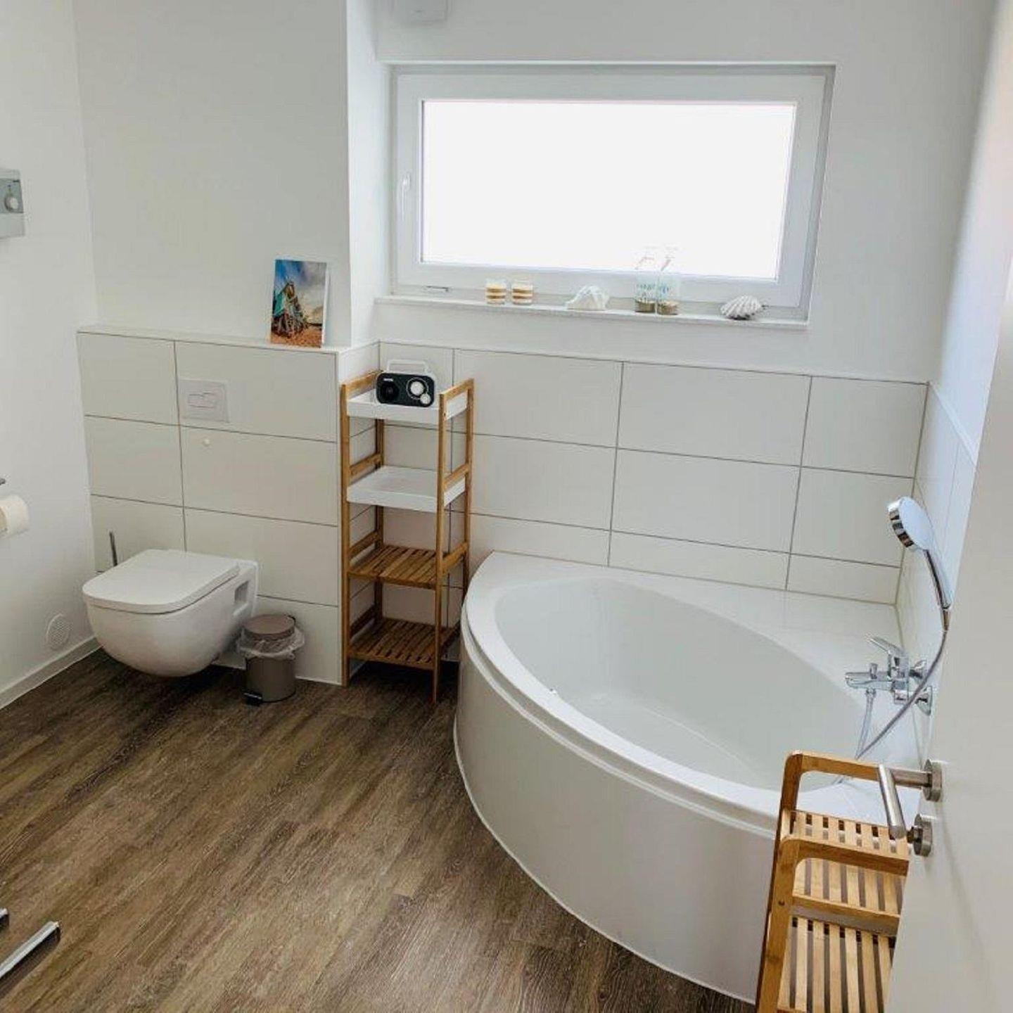 An stürmischen und/oder regnerischen Tagen wird das Badezimmer mit seiner Vollausstattung zum Wellnesstempel.