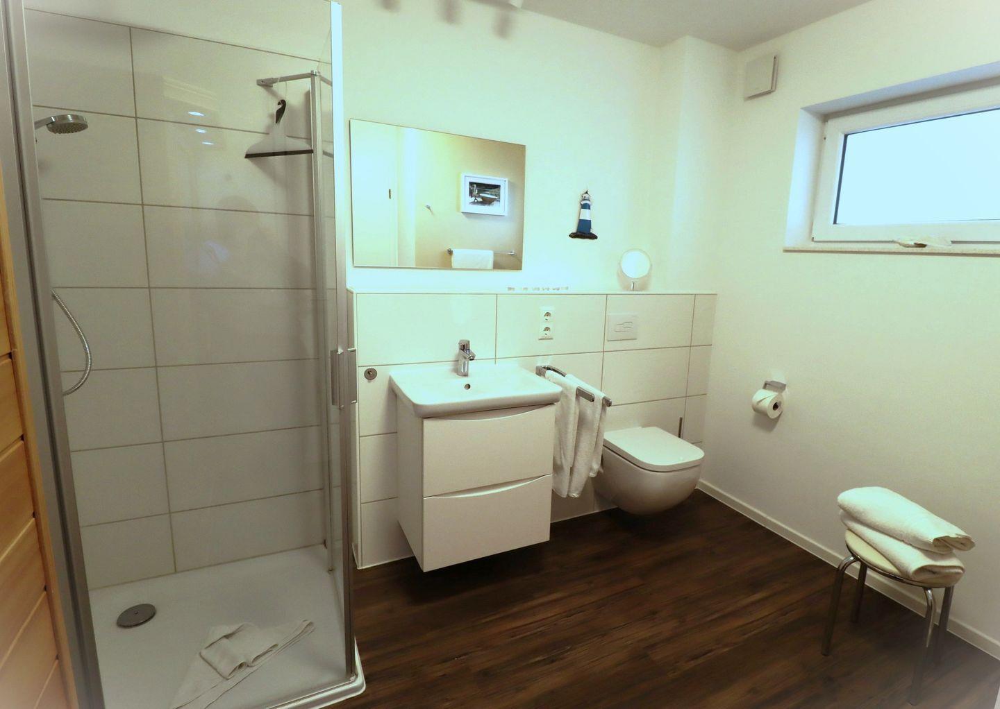 Das Badezimmer ist sehr großzügig geschnitten und mit einer ebenerdigen Dusche ausgestattet. Ferner steht Ihnen hier eine Infrarotkabine zum Entspannen zur Verfügung.