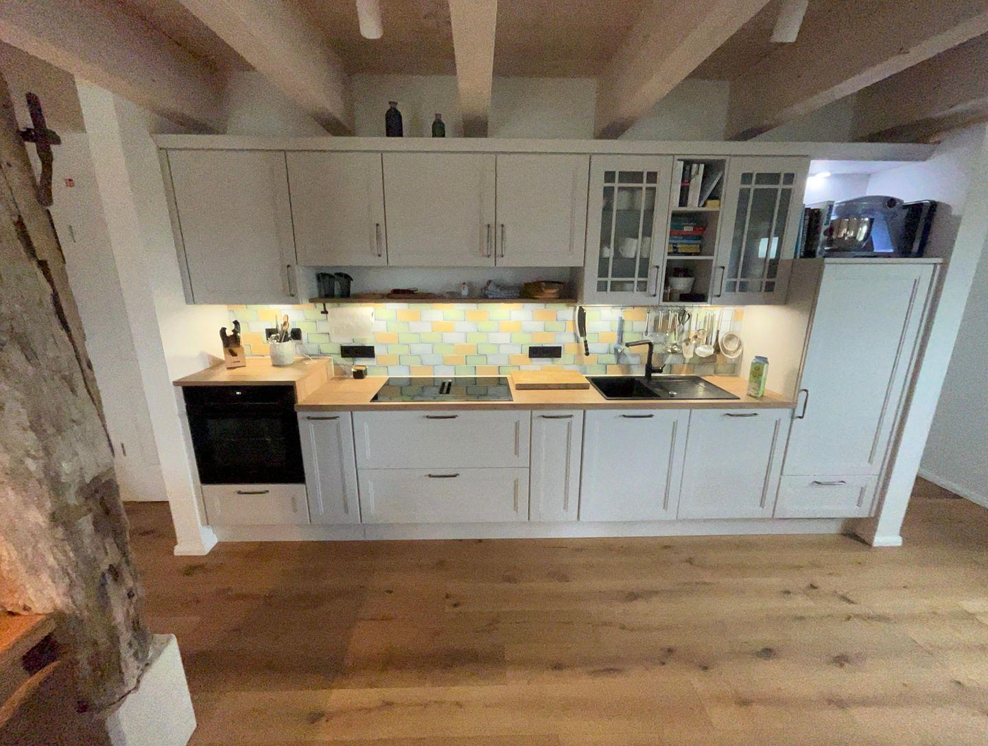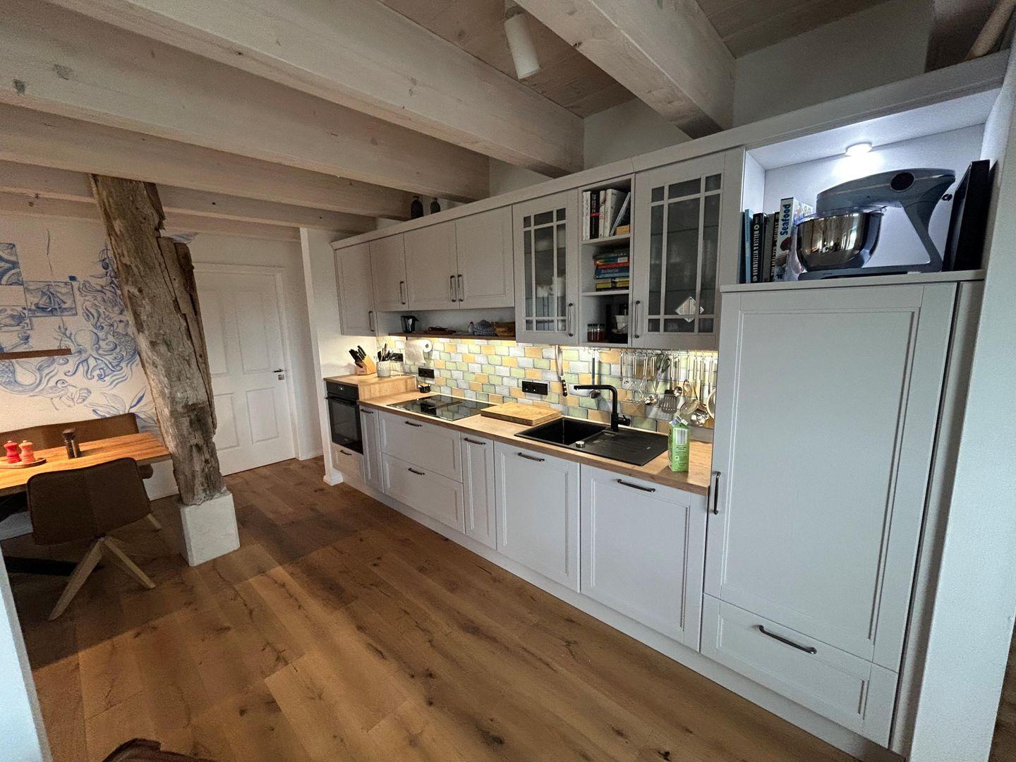 Diese reicht über echt Holzparkett, Fußbodenheizung, Smart TV, Bluetooth Lautsprecher (Teufel-Station), eine vollständig ausgestattete Küche, Ledersessel und -Stühle und Massivholzmöbel, einen Geschirrspüler, Espressomaschine, Toaster, WLAN, und vieles, vieles mehr.