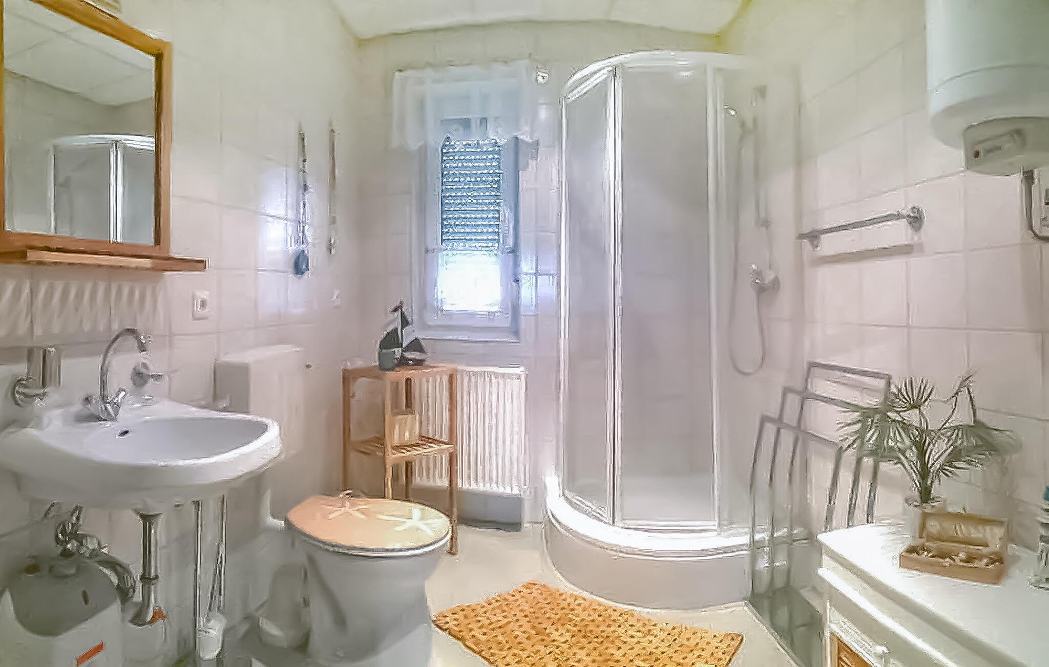 Badrum (nr. 1) - WC: Varmt och kallt vatten. Dusch