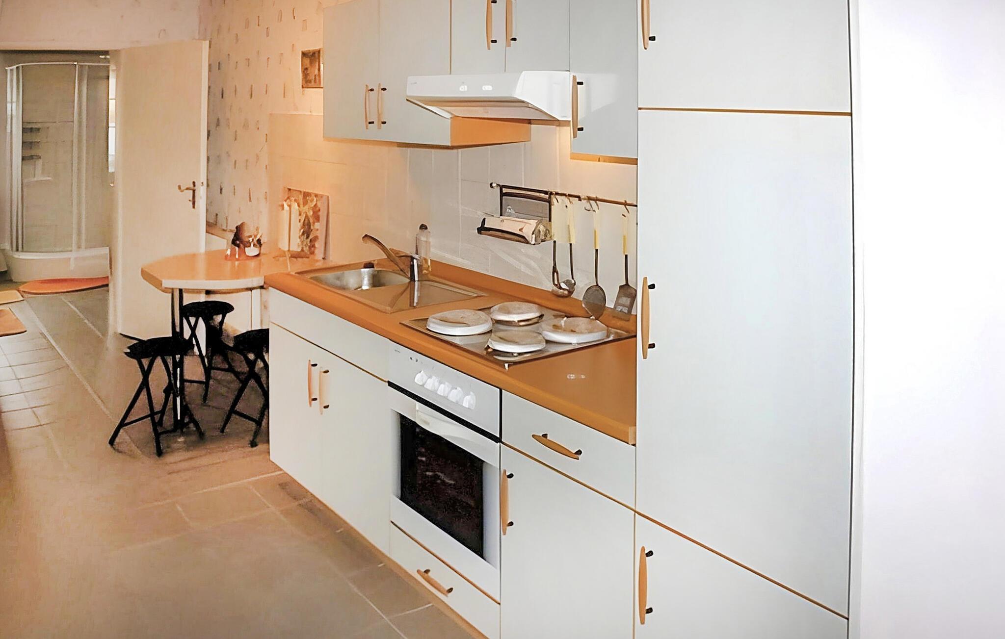 Semesterlägenheten med separat ingång ligger i ägarens hus i ett lugnt bostadsområde i stadsdelen Warenshof. Restauranger, shoppingmöjligheter och bevakad badstrand på Müritz inom en radie av 2 kilometer. Boendet är utrustat med ett vardagsrum (stoppade möbler, matbord, sat-TV, stereoanläggning), ett sovrum (dubbelsäng, 2 sängar, barnsäng tillgänglig), ett kök med matplats och ett badrum med dusch och WC, centralvärme. Internet (W-LAN) finns också tillgängligt. Det finns en terrass och en grill. Det finns möjlighet att hyra båtar och båtplatser. I totalpriset ingår slutstädning, sänglinne, vatten och el. Uppvärmning enligt förbrukning. Handdukar ska tas med. Husdjur är tillåtna: Hundar (ej katter) upp till en höjd av 30 cm är tillåtna i denna fastighet. Hundar är inte tillåtna i sovrummet.