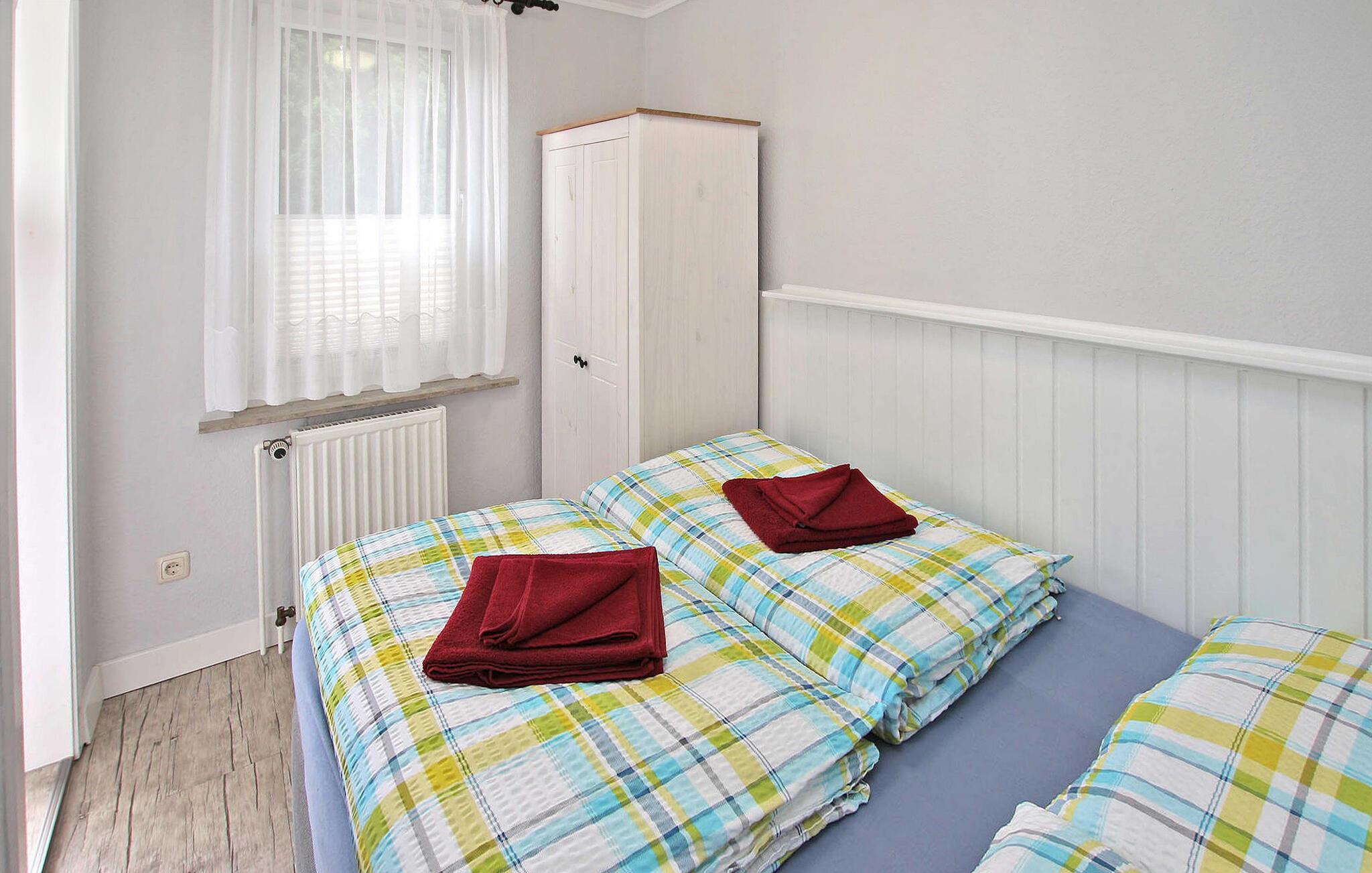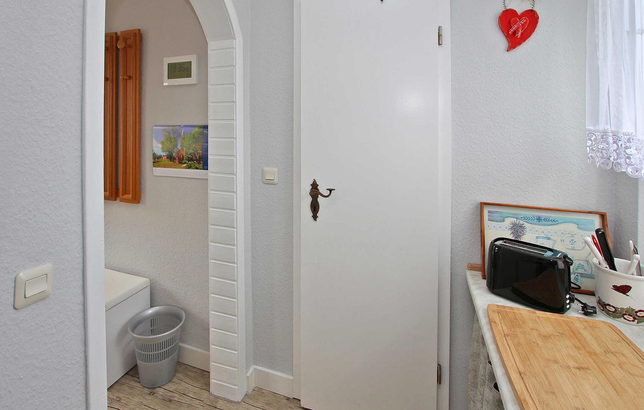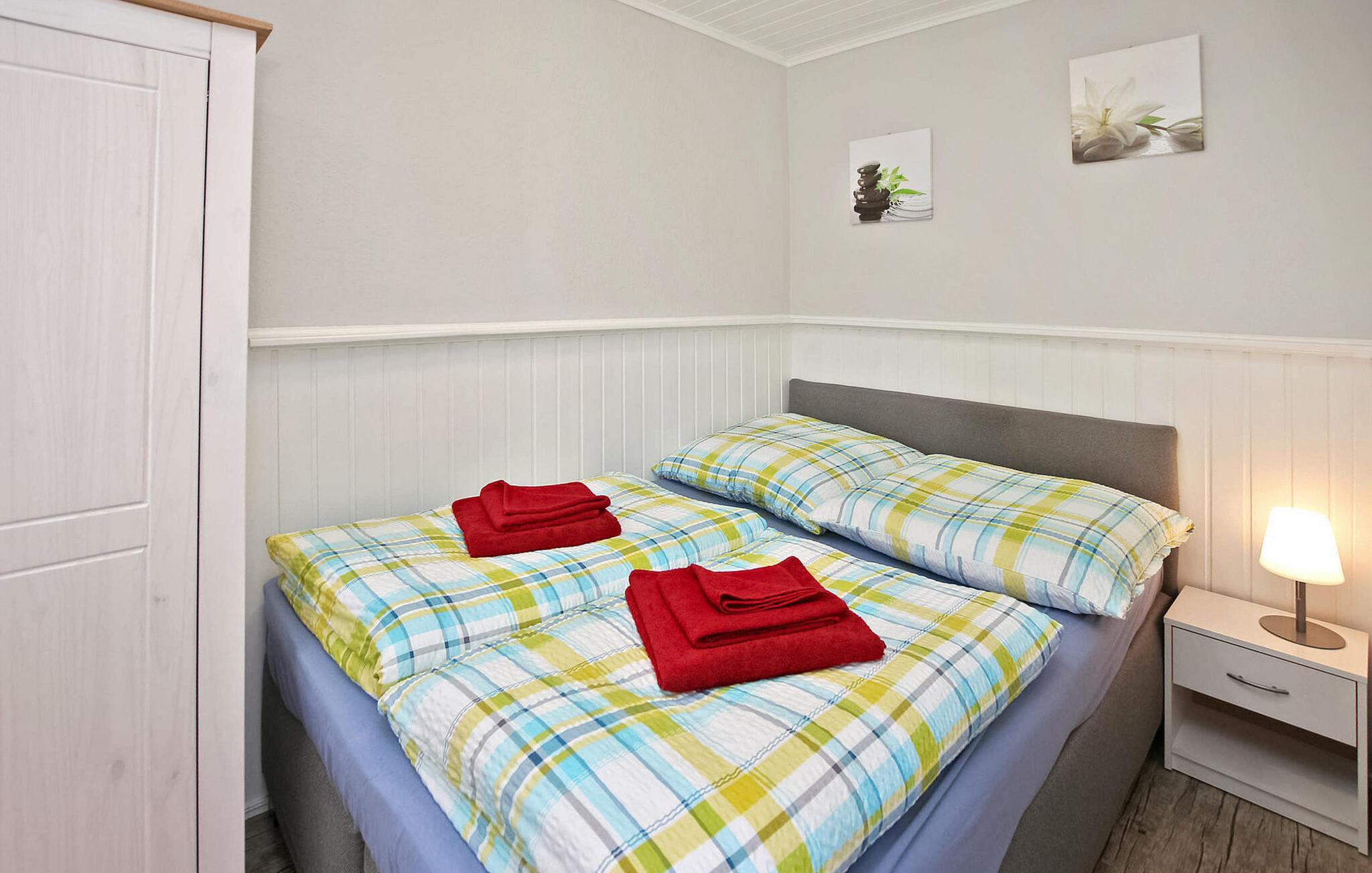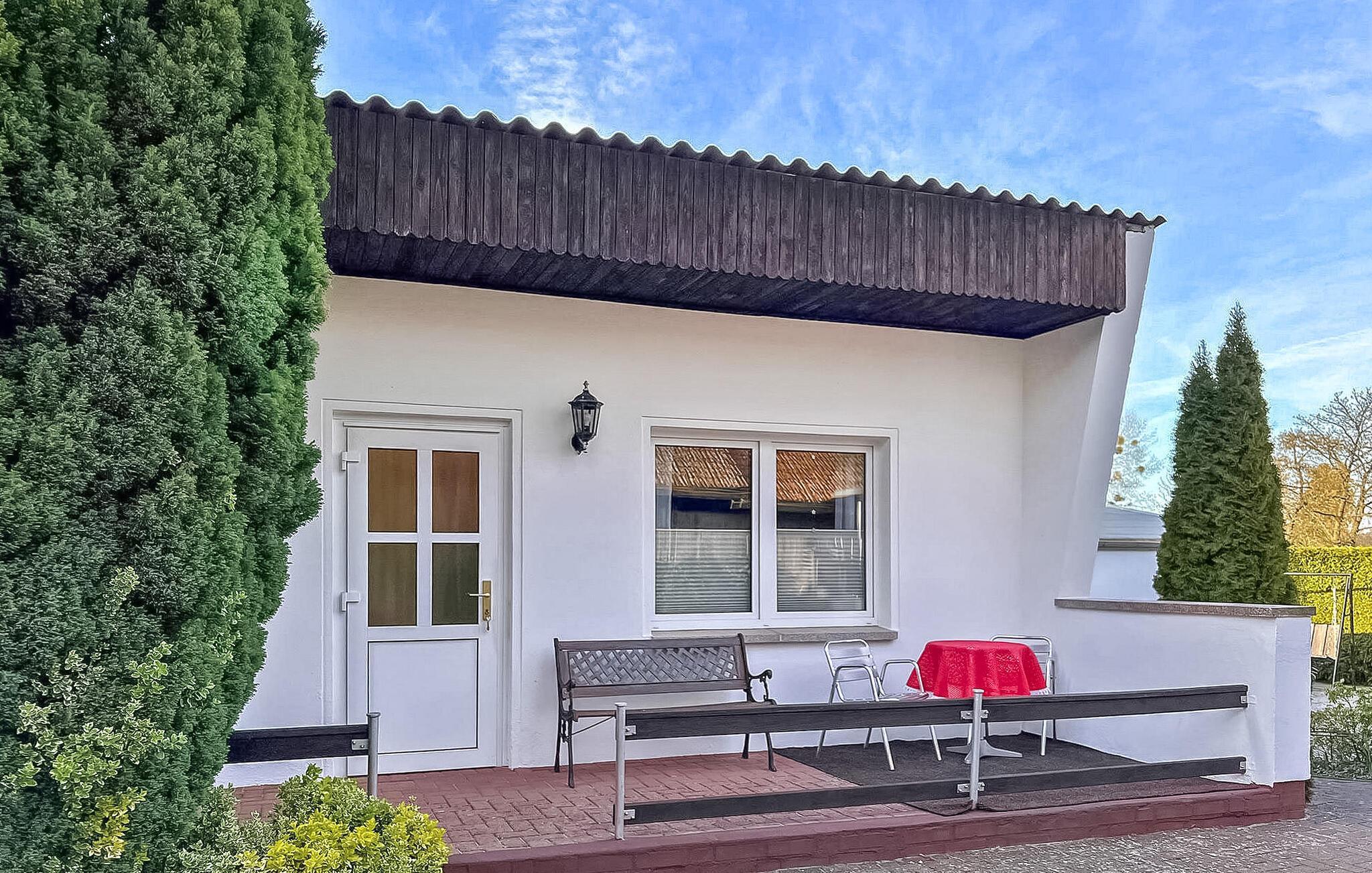 Direkt vid sjön Tiefwarensee finns två semesterlägenheter för 2 personer i vardera ett separat semesterhus på ägarnas ca 1 700 m² stora bostadsfastighet. Tillgång till sjön med brygga och badstege är endast åtskild av en cykelväg. Den centralt uppvärmda, ca 35 kvadratmeter stora lägenheten renoverades grundligt och möblerades om helt 2021. Lägenheten har ett vardagsrum (stoppad sittgrupp, platt-TV, radio, matbord), ett litet kök (elspis, kylskåp, diverse små köksmaskiner), ett sovrum (dubbelsäng) och ett badrum (dusch, WC). Det finns också en möblerad terrass, grill, parkeringsplats, solstolar, en strandstol och gott om sittplatser och solstolar på den stora tomten. I totalpriset ingår slutstädning, sänglinne, handdukar, vatten- och energiförbrukning. Betalas på plats: Skatt på spa, roddbåt (om så önskas) 10 EUR/dag. Husdjur är inte tillåtna i denna fastighet.