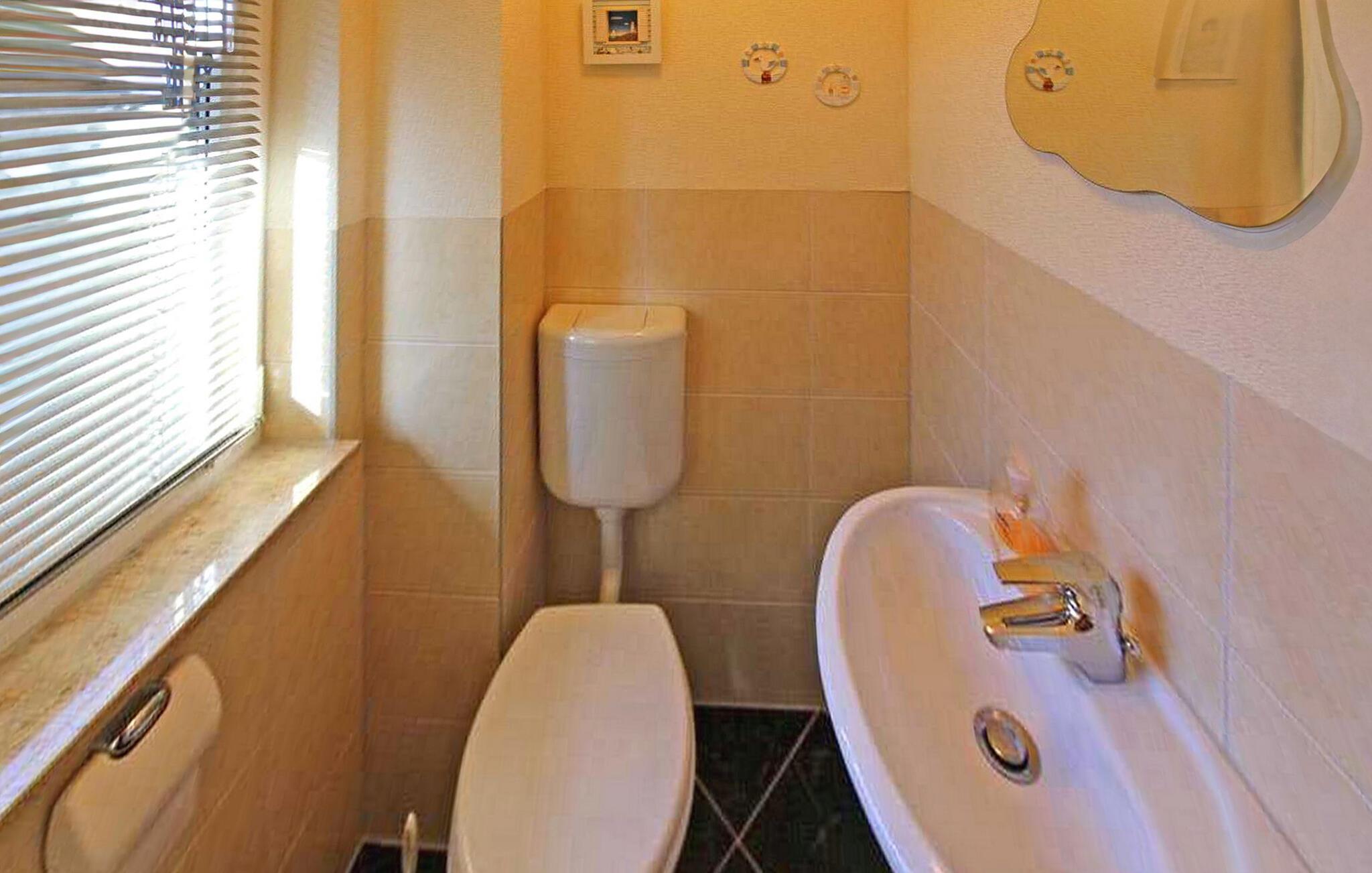 Badrum (nr. 1) - WC: Varmt och kallt vatten. Dusch