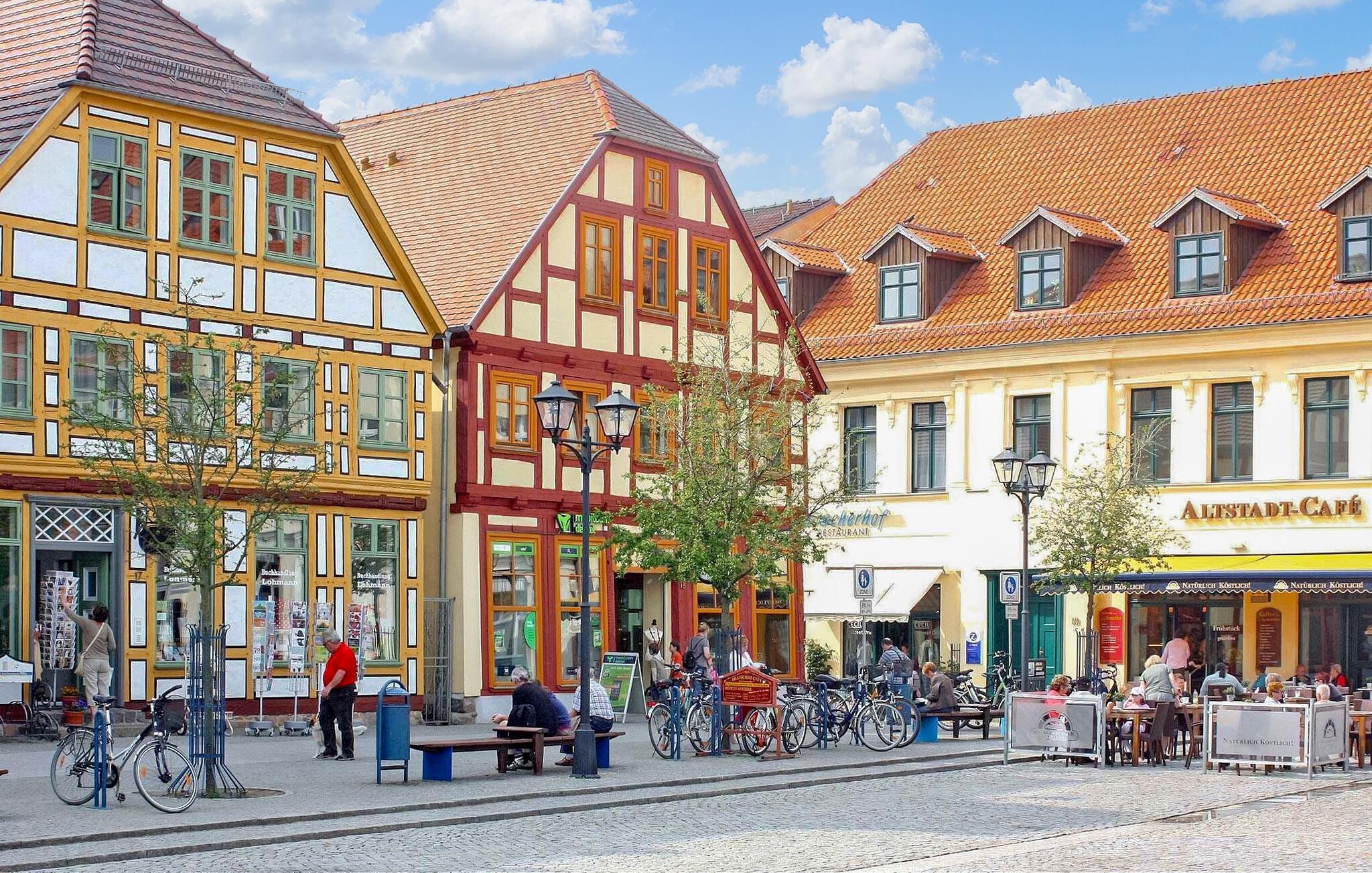 Semesterhuset ligger separat på ägarens 800 m² stora bostadsfastighet i ett lugnt bostadsområde i utkanten av staden. Till stadens centrum och Müritz är det ca 1,5 km.