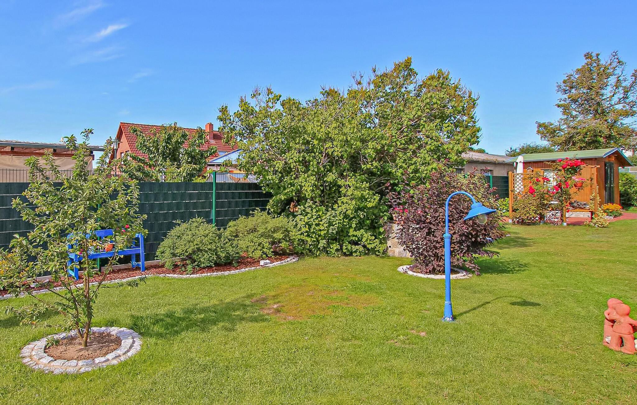 Lugnt beläget i utkanten av Waren (Müritz), i ett bostadsområde, ligger det 60 m² stora semesterhuset för upp till 2 vuxna och 1 barn på baksidan av den ca 1 000 m² stora, inhägnade och mycket välskötta bostadsfastigheten. Den allmänna poolen vid Müritz ligger ca 1000 m bort och stadens centrum med hamn, strandpromenad och den charmiga gamla stan ligger ca 2 km bort (kollektivtrafik). Shoppingmöjligheter finns i det omedelbara grannskapet.