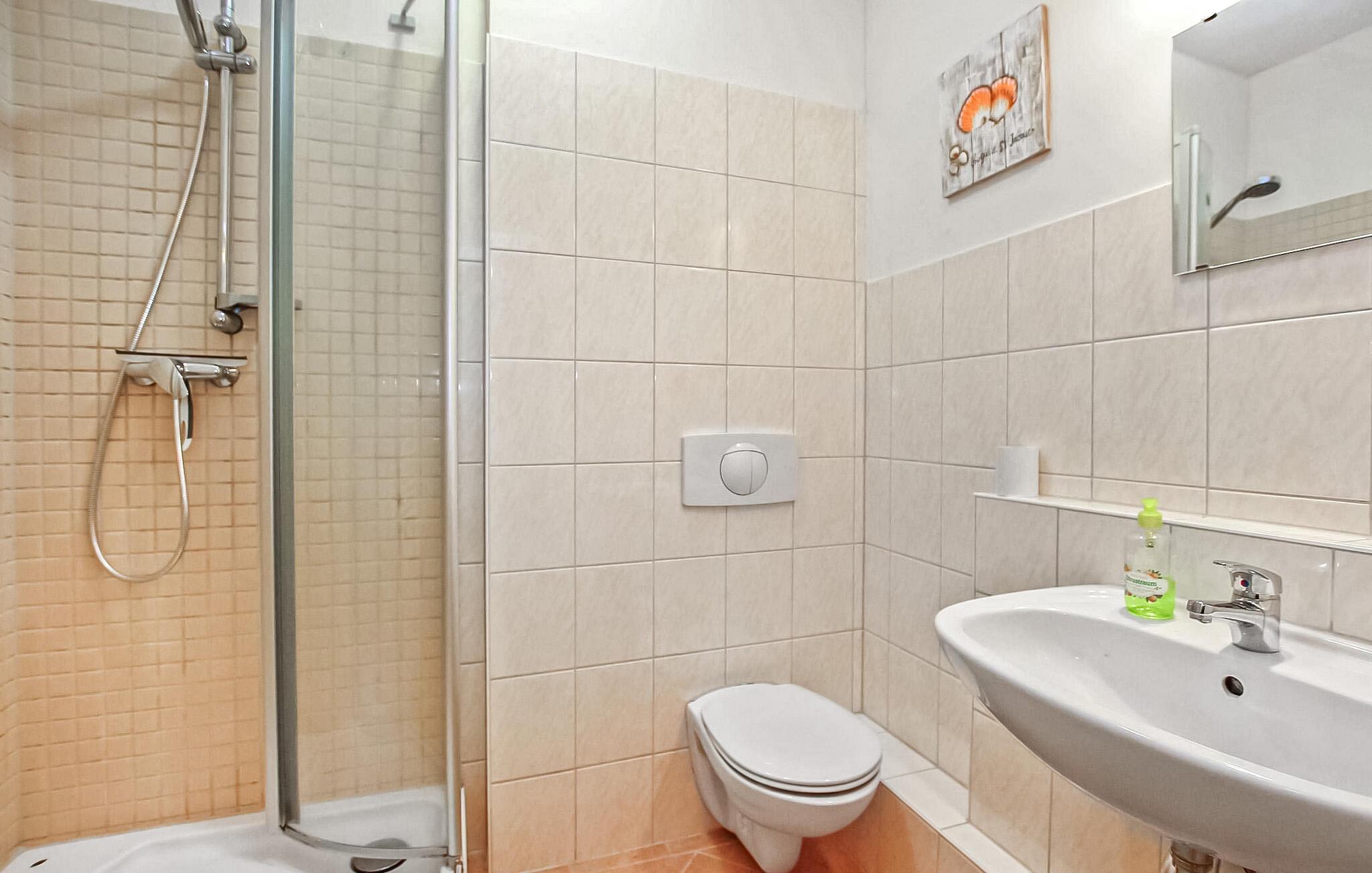 Badrum (nr. 1) - WC: Varmt och kallt vatten. Dusch