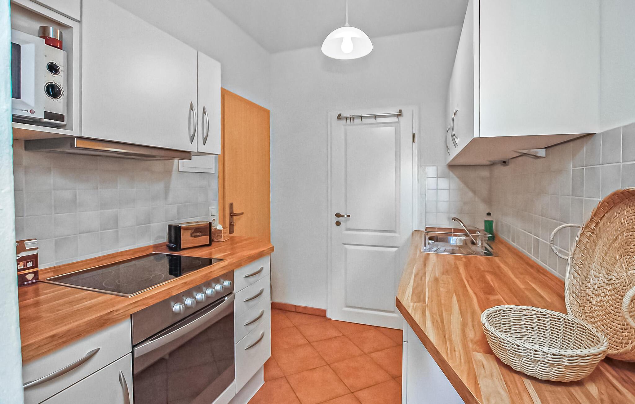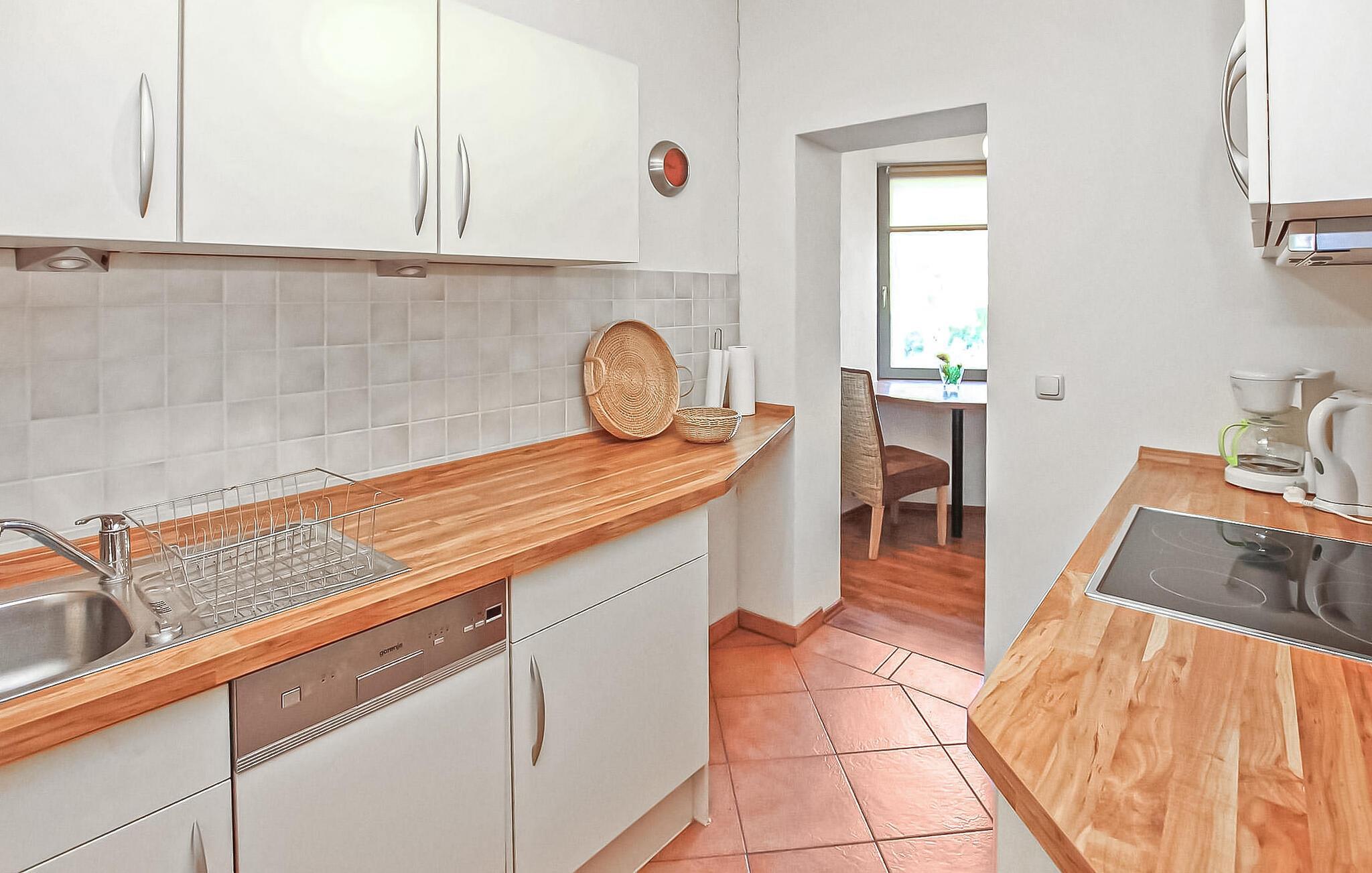 Lite bort från liv och rörelse, men ändå bara 500 m (genom en gångtunnel) från den vackra gamla stan och hamnen med sin strandpromenad, ligger semesterlägenheten för två personer på ägarens helt slutna bostadsfastighet på ca 1 700 m² på första våningen i ett flerbostadshus. En restaurang och båtuthyrning på sjön Tiefwarensee ligger bara några steg bort, medan järnvägsstationen och ett bageri ligger cirka 400 meter bort.