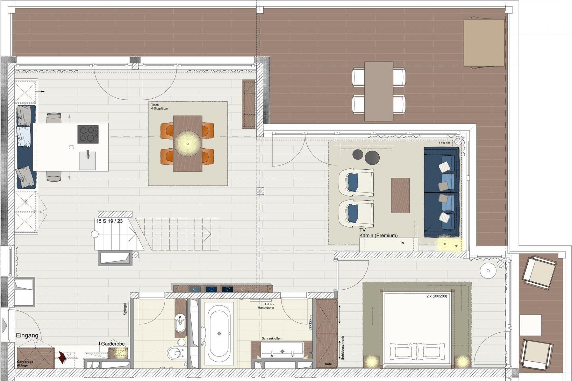 Bottenvåningen: (öppet kök(matbord, Kokplattor(Spis med 4 kokplattor, induktion), vattenkokare, brödrost, kaffebryggare, ugn, diskmaskin, kyl och frys), ardags- och matrum(Bäddsoffa 1 pers., TV(kabel)), sovrum(dubbelsäng), badrum(badkar, handfat, hårfön), WC(handfat, toalett )) På våning 1: (Vardags- och sovrum(Bäddsoffa 1 pers.), badrum(dusch, handfat, toalett ), förråd(dressing room)) garage(delas med andra gäster ), sauna(paid), balkong, värme(golvvärme), cykelförvaring, trädgårdsmöbler, parking lot(public), swimmingpool(delas med andra gäster , betalt, uppvärmd), hiss, baby crib(paid), Handdukar/lakan (inkl.)