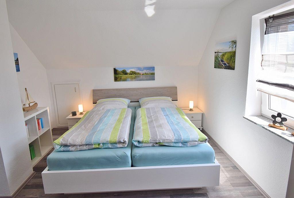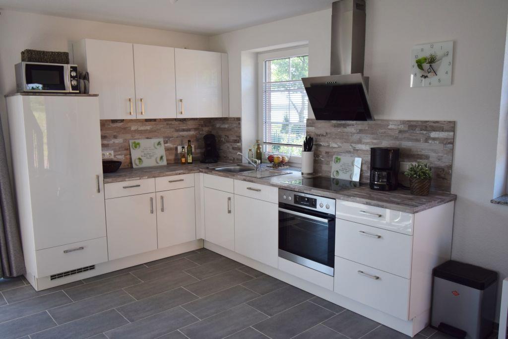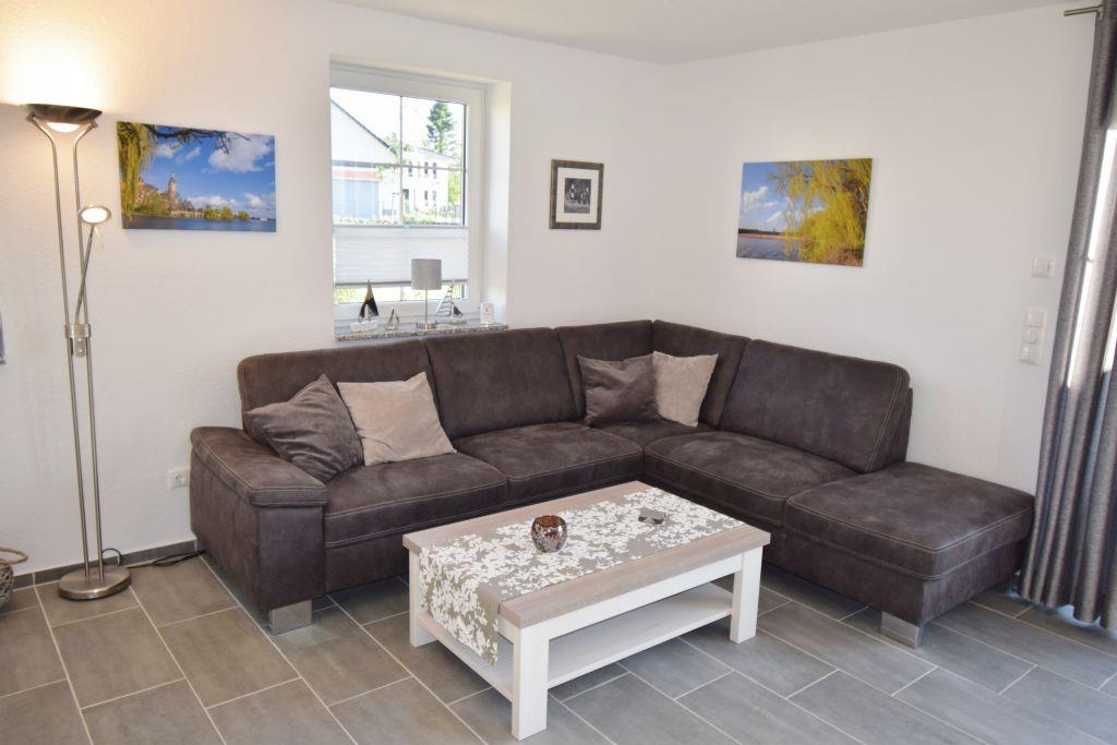 Der großzügige Wohn-Essbereich mit Seeblick lässt keine Wünsche offen. Ein gemütliches Sofa, ein großer SAT-Fernseher (40 Zoll) mit DVD/CD/USB, eine Playstation mit Spielen und eine Bücher- und Spielesammlung sorgen für Entspannung und Unterhaltung. Das Schlafzimmer im Erdgeschoss ist mit einem Doppelbett (1,80 x 2 m) ausgestattet. Im Erdgeschoss befindet sich ebenfalls ein schönes Duschbad (Dusche mit flachem Einstieg) mit Handtuchheizkörper und Fön. Eine Waschmaschine, Wäscheständer, Bügeleisen- und -brett sind ebenfalls vorhanden. Die moderne Küche bietet eine reichhaltige Ausstattung, z.B. Backofen, Mikrowelle, Kühlschrank mit Gefrierfach, Geschirrspülmaschine, Kaffeemaschine, Senseo, Toaster, Wasserkocher, Eierkocher, hochwertige Töpfe, Tischgrill, Sandwichtoaster, Waffeleisen und weiteres vielfältiges Koch-und Backgeschirr.