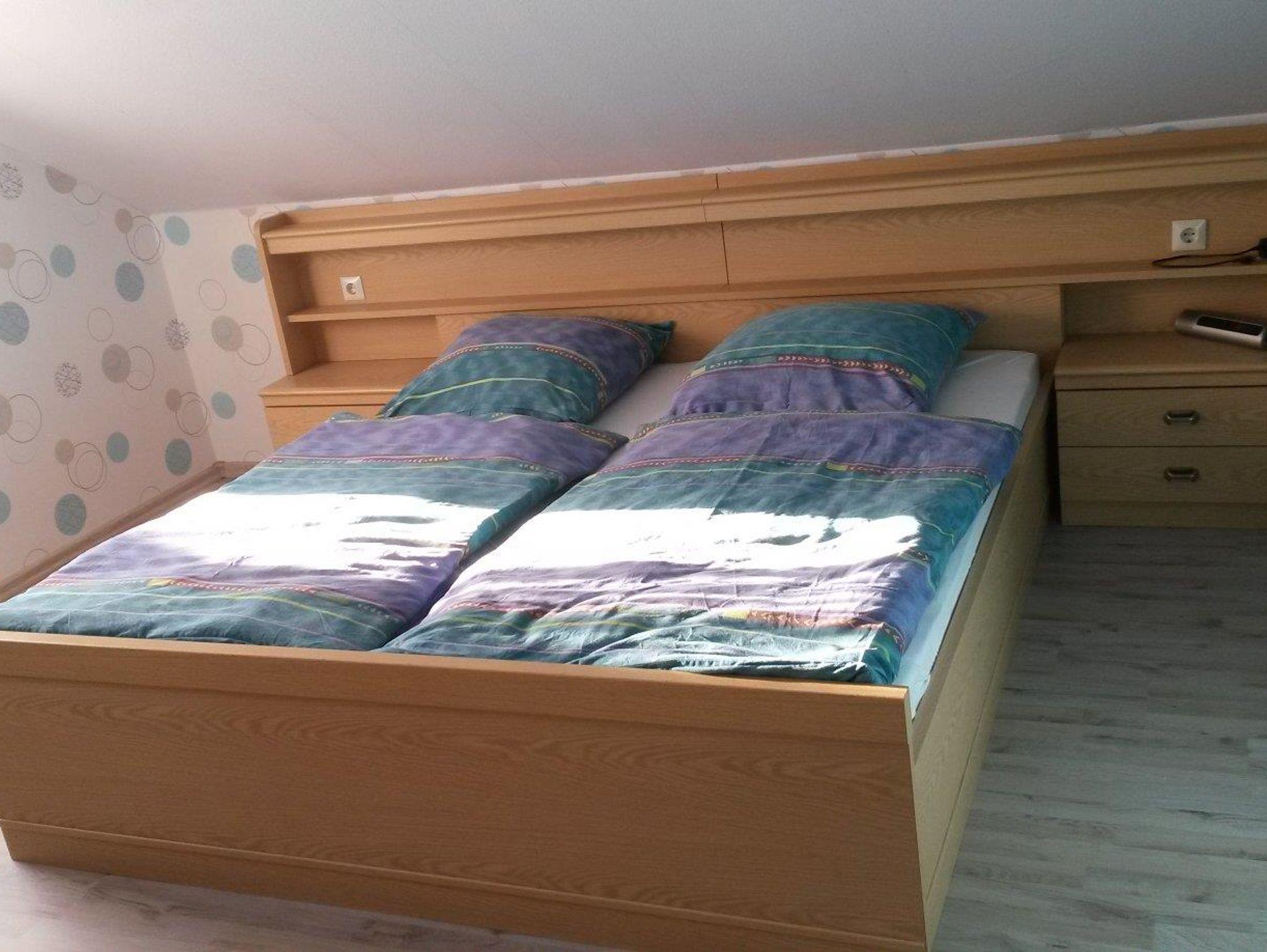 Gemütliche DG-Ferienwohnung (55 m²) mit Wohnküche, zwei getrennte Schlafzimmer, 1 Bad mit Badewanne/Dusche/WC und 1 Bad mit Dusche/WC sowie Balkon in sonniger, ruhiger Waldrandlage mit herrlicher Aussicht auf die Königsheide nähe Waldschwimmbad und Rundwanderwege. Kinderermäßigung auf Anfrage. Haustiere auf Anfrage: 5,00 € pro Tag.