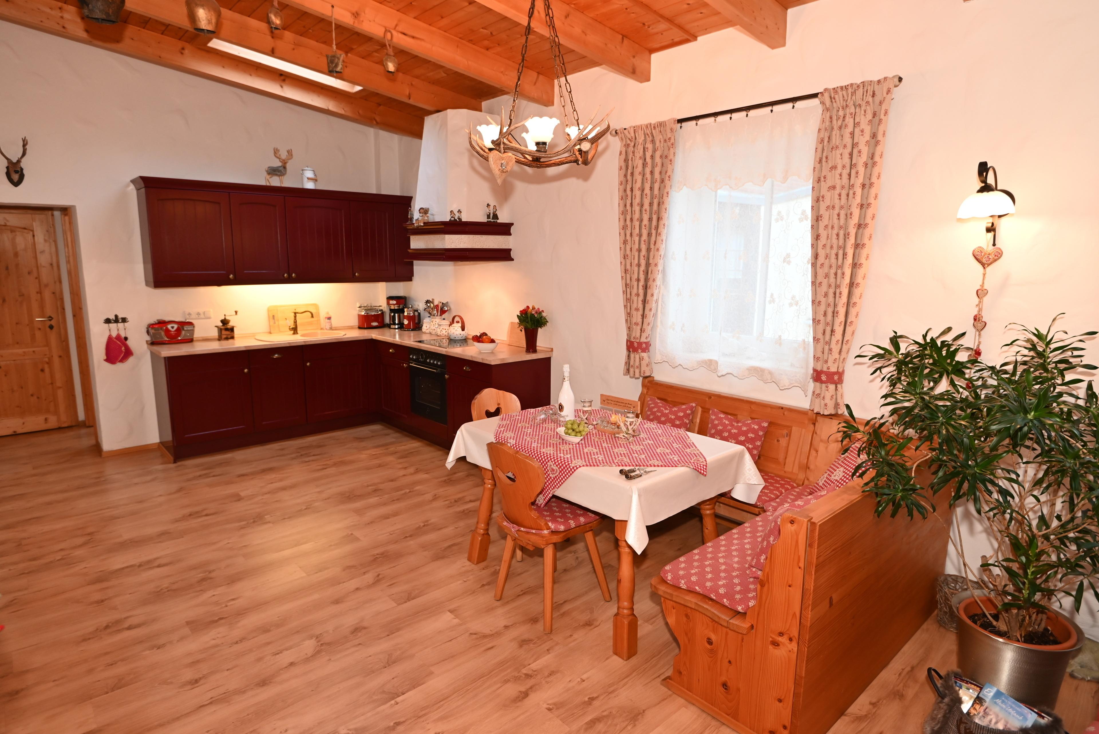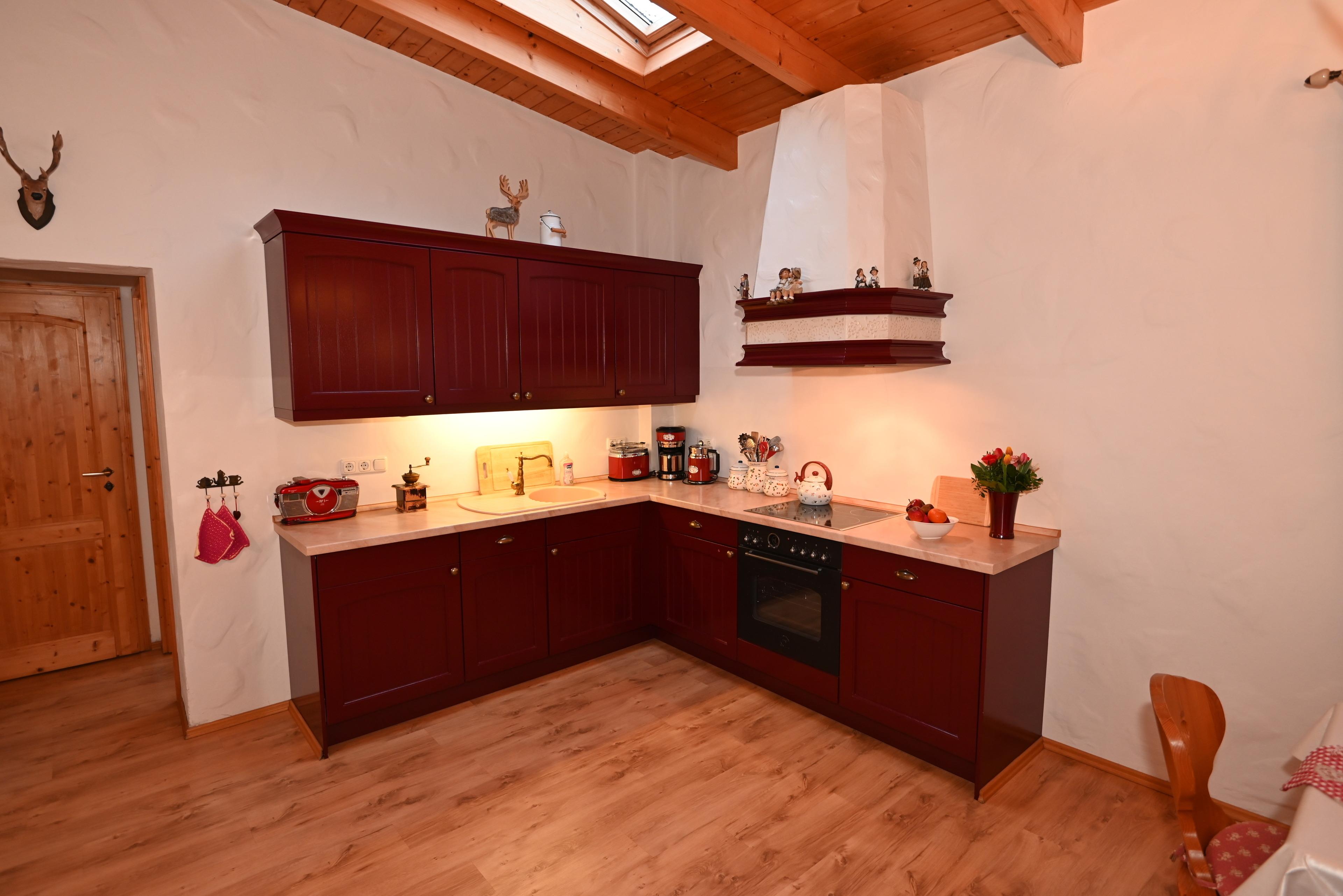 Die offene KÜCHE ist mit allem ausgestattet was zu einem Kochvergnügen einlädt. Zur technischen Ausstattung gehören Backofen, Spülmaschine, Kühlschrank mit Gefriermöglichkeit, Ceran-Kochfeld, Kaffeemaschine, Wasserkocher und Toaster. Dazu gesellen sich viele weitere Kochutensilien.