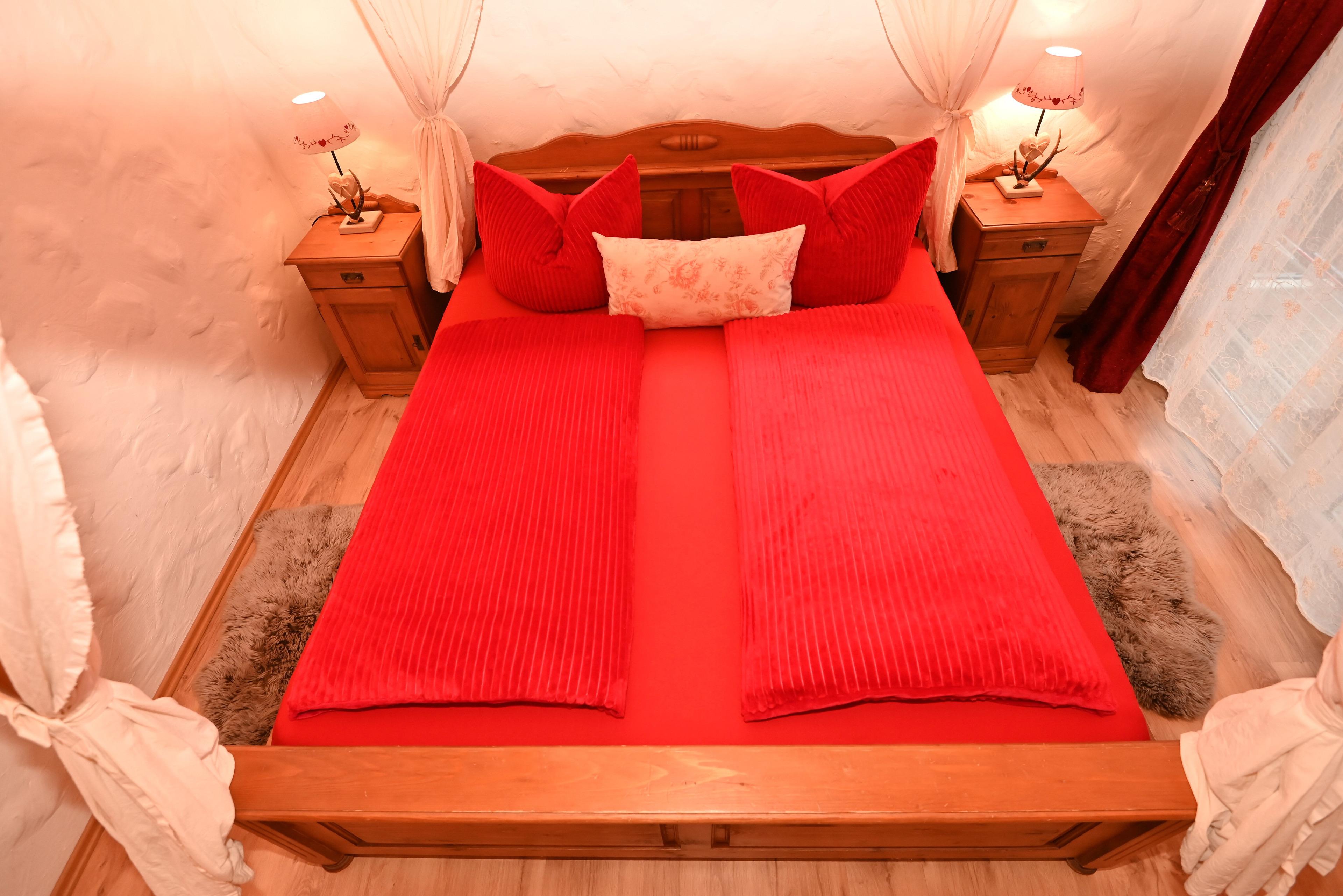 Die Suite beherbergt zwei SCHLAFZIMMER. Das erste Schlafzimmer verfügt über Himmelbett (180x200 cm) und Kleiderschrank. Das zweite Schlafzimmer verfügt über ein französisches Bett (160x200 cm) und einen Kleiderschrank.