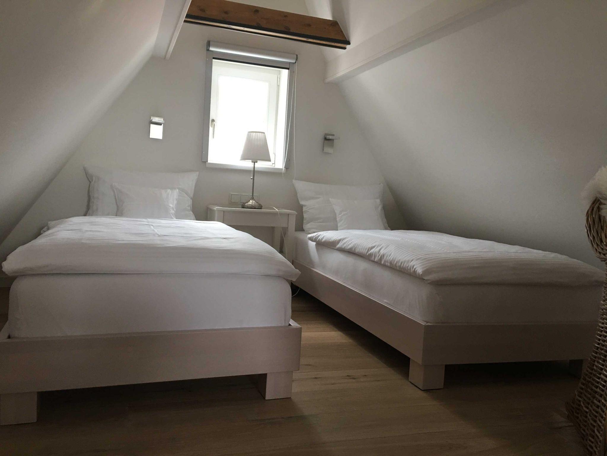 Das Appartement B ist im Obergeschoss gelegen. Die ca. 405 qm Wohnfläche verteilen sich in den Wohn- und Schlafbereich (zwei Einzelbetten) und sowie das Bad.