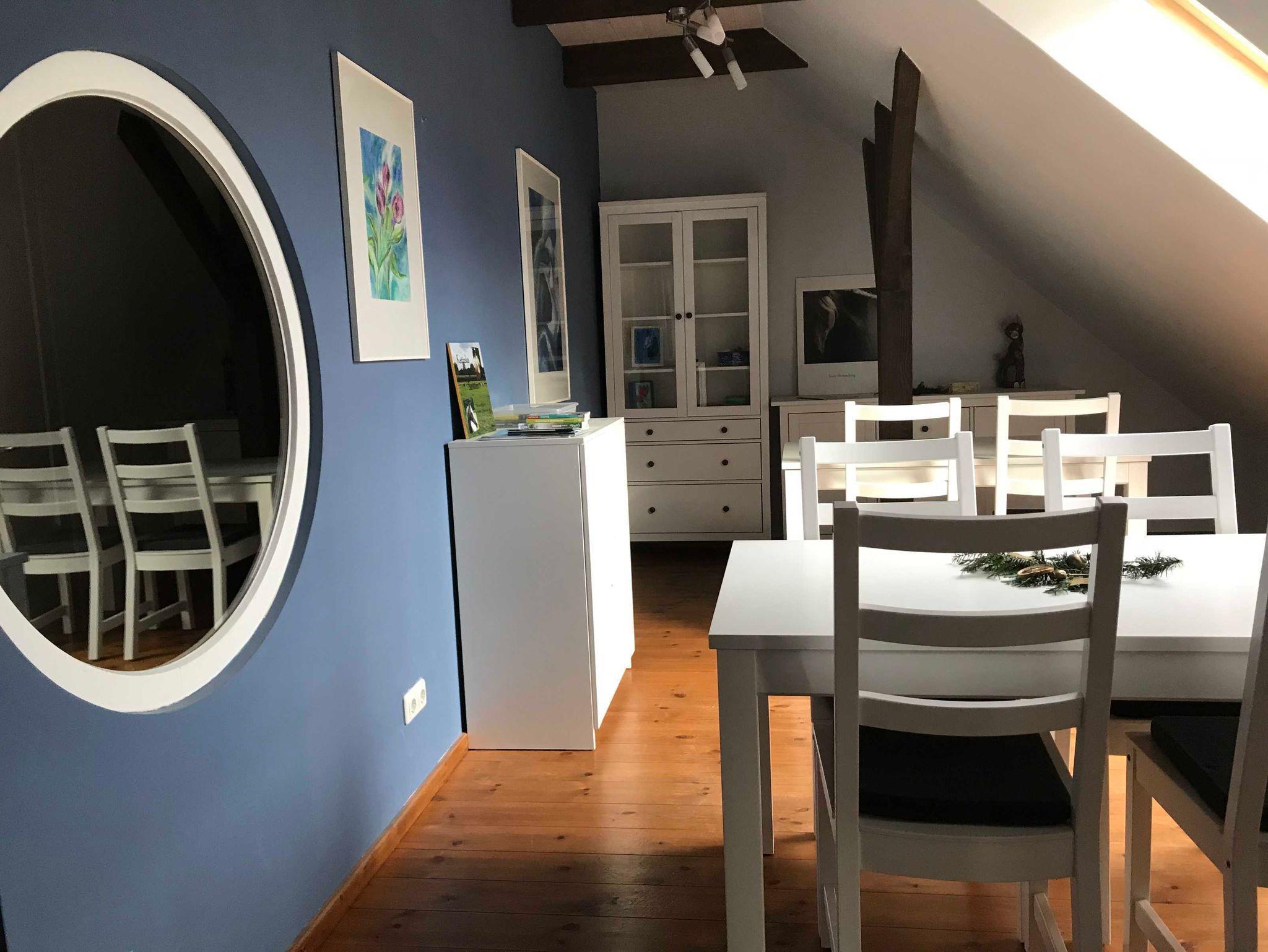 Unsere 2 liebevoll eingerichteten Maisonettes befinden sich im Dachgeschoss unseres Hauses und bieten Platz für 4 und 6 Personen. In der großzügigen Küche - Nutzung durch 2 Ferienwohnungen - könnt ihr euch selbst versorgen und auf Wunsch Kontakt zu anderen Gästen knüpfen.