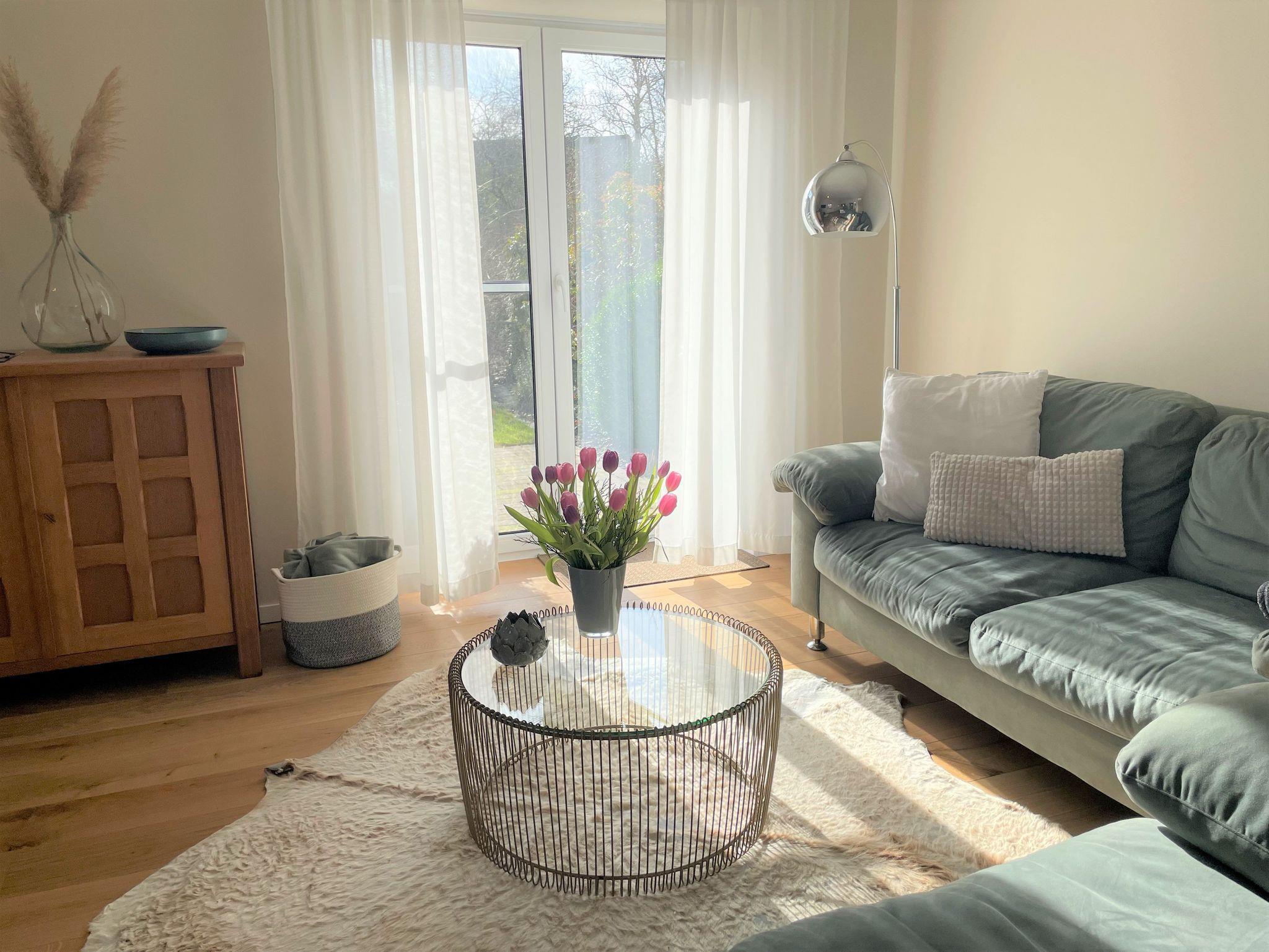 Das 2021 neu sanierte Ferienhaus steht zur Alleinnutzung mit seinen 54m² zur Verfügung. Mittelpunkt des Ferienhauses ist der großzügige mit Echtholzboden ausgestattete Wohn-und Essbereich. Angegliedert ist eine komplett eingerichtete Küche mit Umluft- Backofen, Cerankochfeld, Kühl-/ Gefrierschrank und Spülmaschine. Das tageslichthelle Badezimmer ist mit ebenerdiger Dusche/ WC ausgestattet, Föhn und Kosmetikspiegel sind vorhanden. Im hauseigenen Abstellraum befindet sich eine Waschmaschine. Über eine Raumspartreppe ( nicht für gehbehinderte Personen geeignet ) erreichen Sie das Schlafzimmer mit Doppelbett ( 1,80 x 2,00 m ) und Blick ins Grüne. Auch ein eigener Garten mit Terrasse und Möglichkeit zum Grillen gehört mit dazu. Alle Fenster im Ferienhaus sind mit einem Insektenschutzgitter versehen.