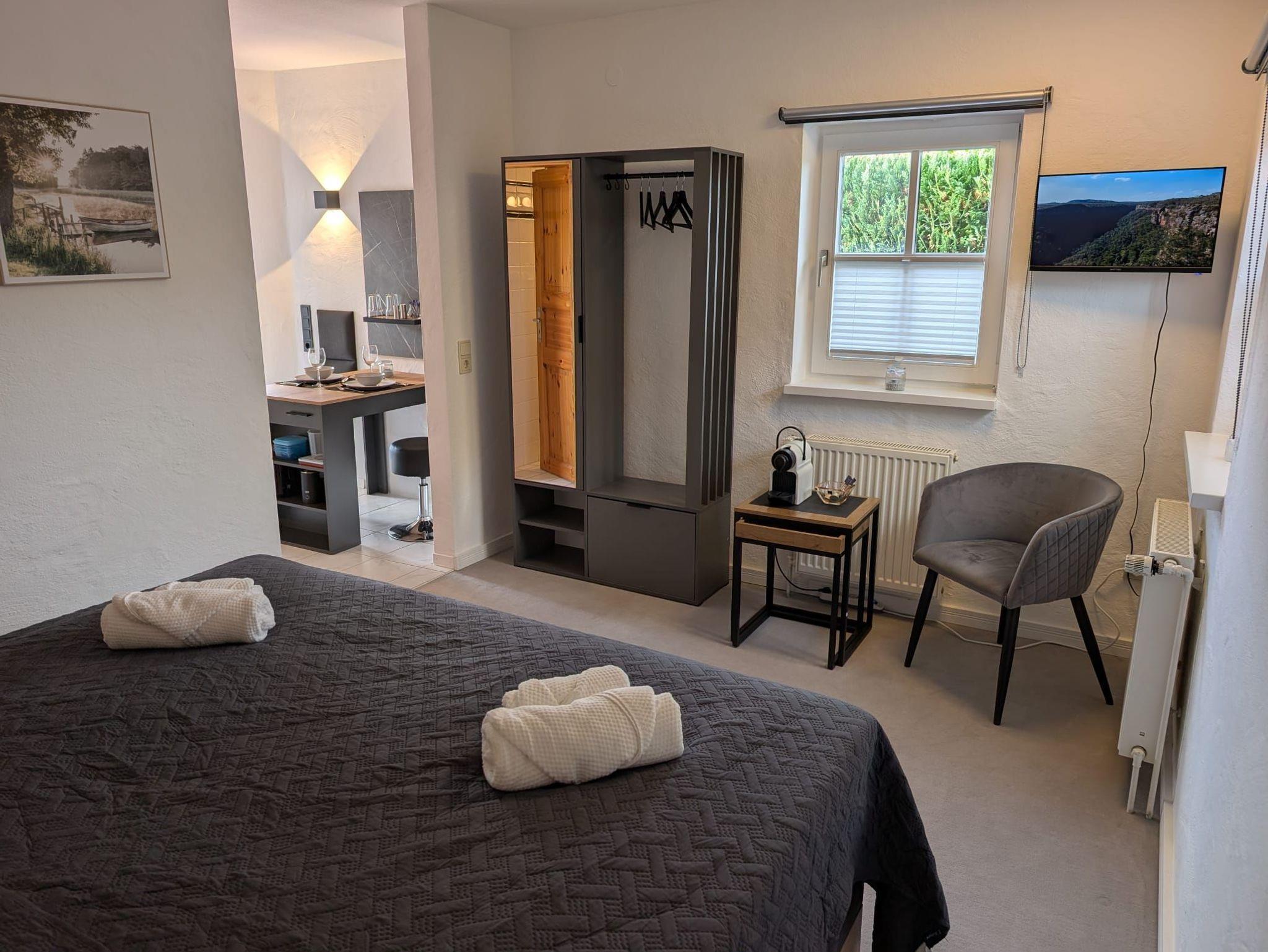 Das Apartment ist komfortabel ausgestattet und bietet alles, was Sie für einen angenehmen Aufenthalt benötigen. Ein hochwertiges 180cm Boxspringbett garantiert erholsamen Schlaf. In der praktischen Küchenzeile stehen Ihnen ein Kühlschrank, zwei Herdplatten sowie eine Basis-Küchenausstattung zur Verfügung. Zusätzlich finden Sie eine Nespresso-Kapselmaschine, einen Toaster und einen Wasserkocher. Am kleinen Essbereich für zwei Personen können Sie gemütlich frühstücken oder den Abend ausklingen lassen. Für entspannte Stunden sorgen ein bequemer Sessel, ein Flachbild-TV sowie ein großer Kleiderschrank mit Bügeln, Fächern und viel Stauraum. Das Badezimmer verfügt über eine Badewanne mit integrierter Regendusche sowie einen Föhn. Dank Verdunkelungsrollos schlafen Sie ungestört und entspannt. Im Sommer bleibt das Apartment angenehm kühl, während es im Winter gut beheizt werden kann. Aktuelles Informationsmaterial über Worpswede und die Umgebung liegt für Sie bereit.
