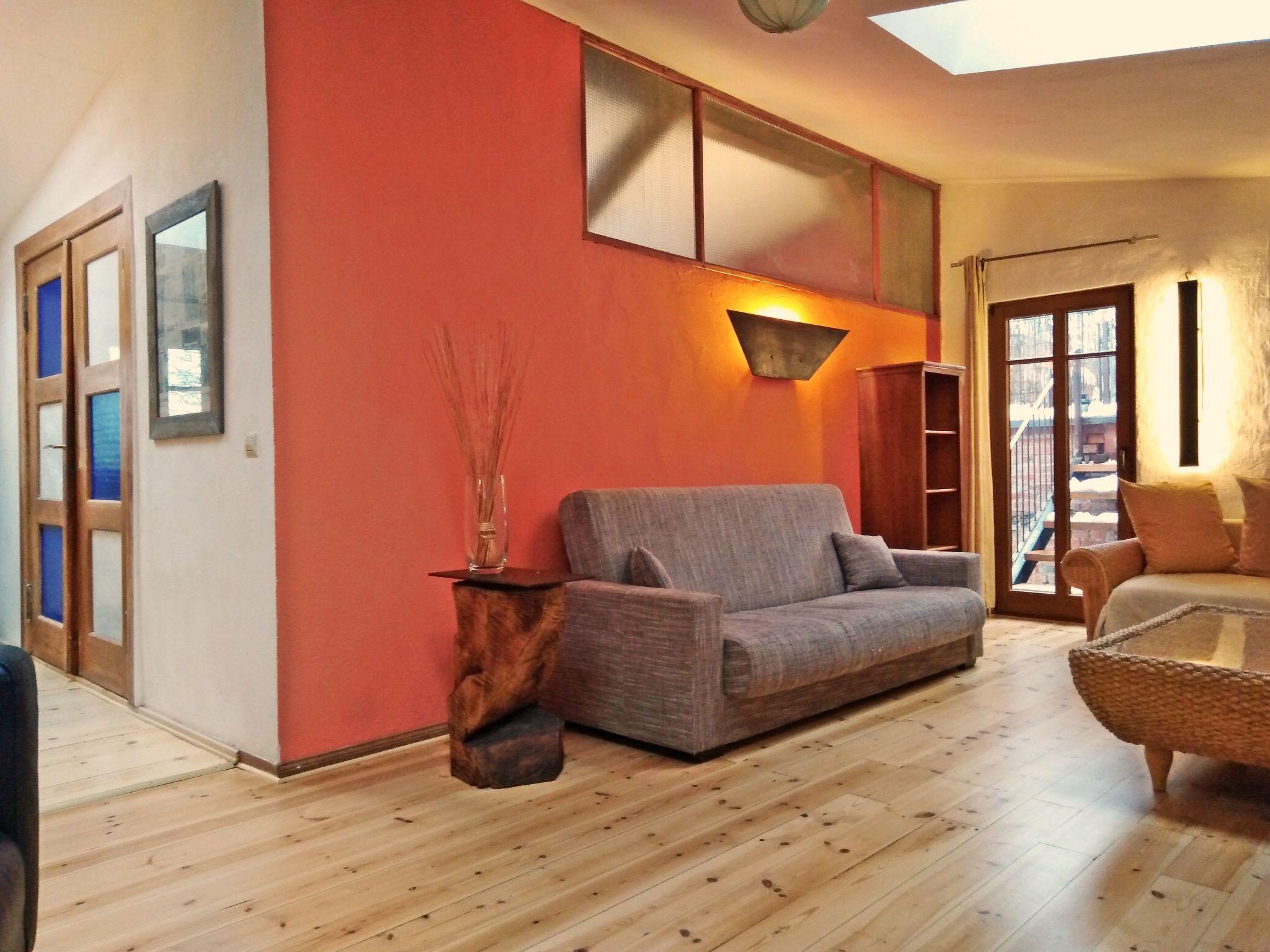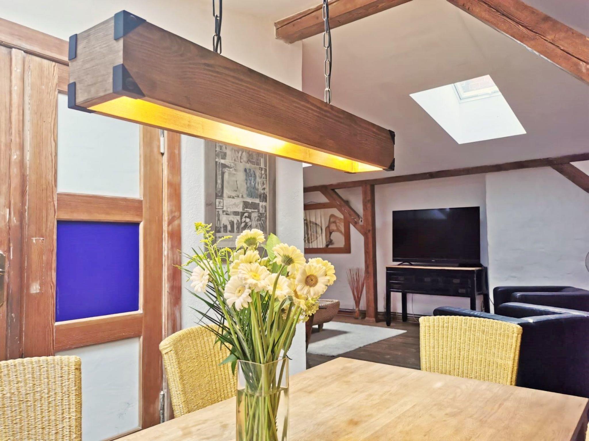 Discover the magic of the "Alte Schnapsbrennerei", a jewel in the idyllic landscape between the gentle Oderbruch and the picturesque Märkische Schweiz in Haselberg. This charming 19th century estate ensemble combines historical ambience with modern comfort and artistic flair. The holiday flat on the top floor is flooded with light thanks to five additional skylights. It offers a cosy home for up to 6 people.