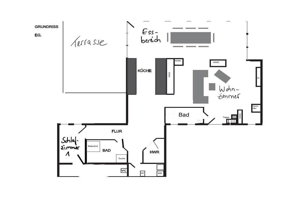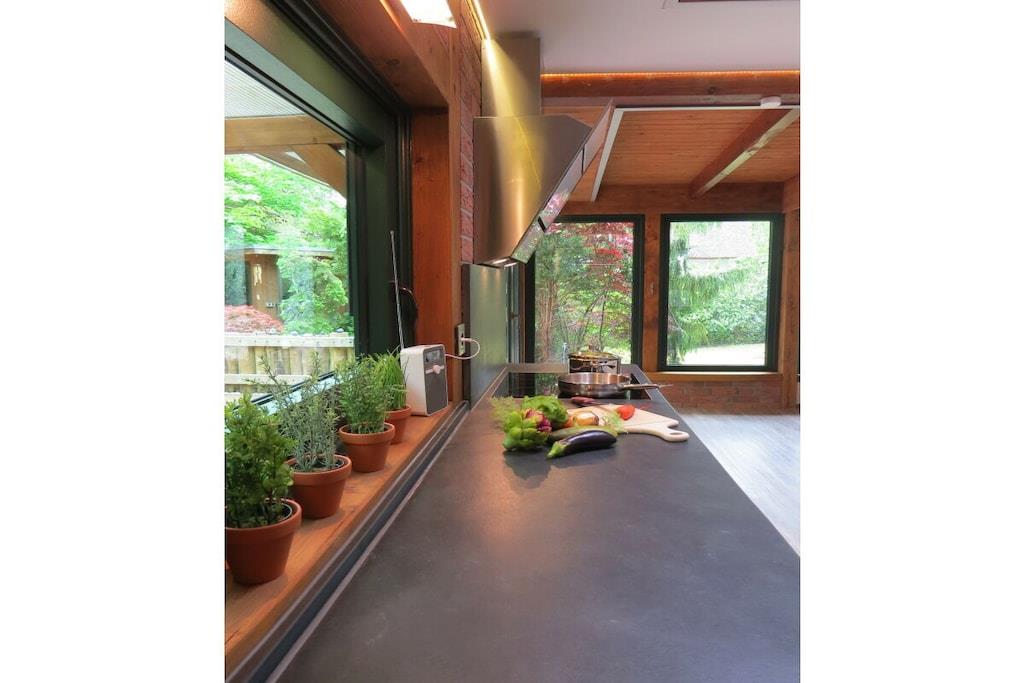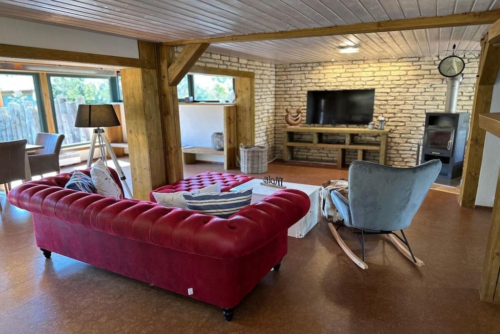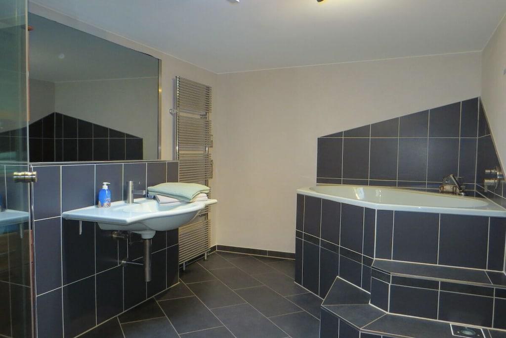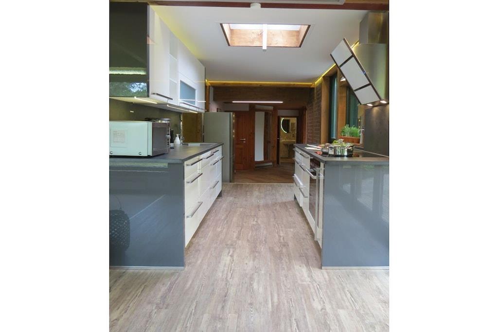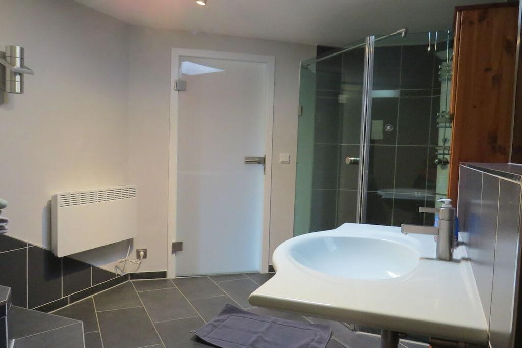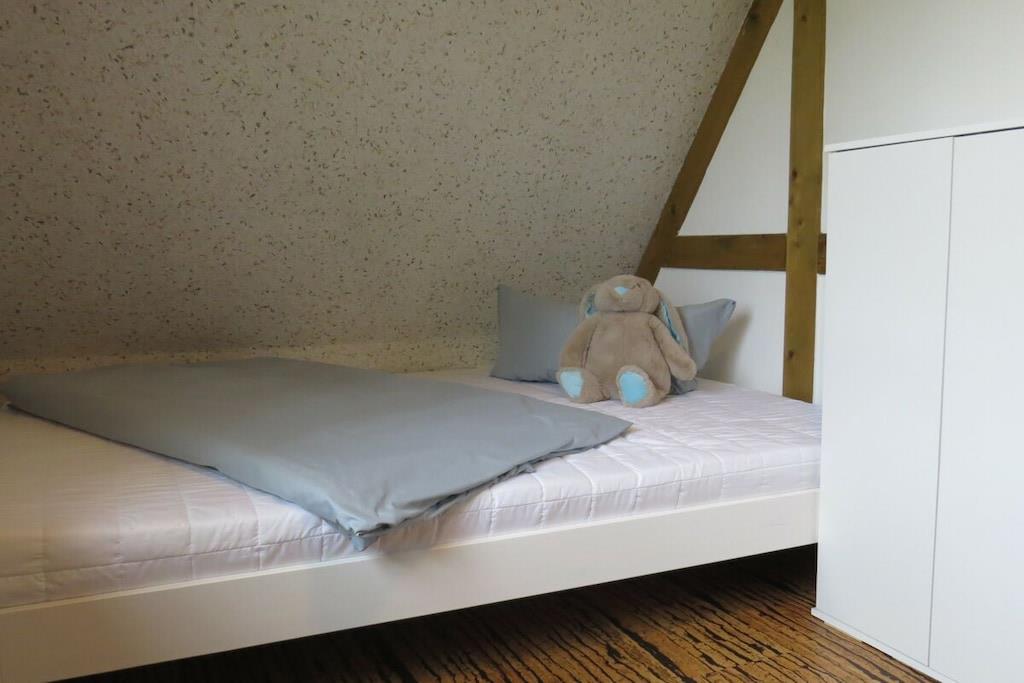 Tillbringa underbara soliga timmar och kvällar på den stora bambuterrassen. Semesterhuset har ett rymligt vardagsrum med öppen spis och matplats med utsikt över trädgården. Intill vardagsrummet finns ett litet badrum med dusch och toalett. Köket med öppen planlösning är modernt och fullt utrustat. Längst bak i huset finns ett sovrum med dubbelsäng (1,80m x 2,00m) och en separat toalett i ett angränsande rum. Det stora badrummet har badkar, dusch och toalett. Tvättmaskin och torktumlare finns också på denna våning. På övervåningen hittar du två sovrum. Det mindre rummet, med två enkelsängar (1,40m x 1,90m), kan användas som sovplats för barn. Det andra sovrummet har en dubbelsäng (1,80m x 2,00m).