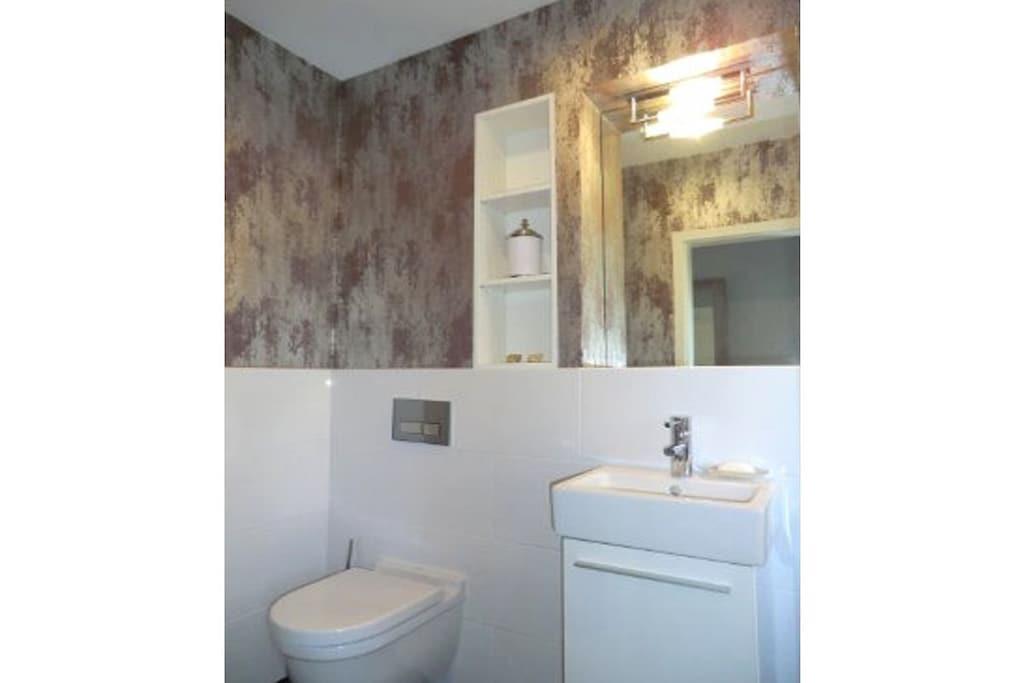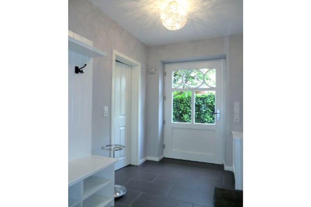 Bottenvåning med entréhall och garderob, gästtoalett, rymligt vardagsrum och matsal med en historisk kakelugn och utgång till terrasser/trädgård, samt en övergång till det öppna moderna köket, grovkök och trappa till övervåningen. Övervåning: Sovrum med dubbelsäng och rymliga inbyggda garderober, rymligt badrum med dusch och badkar/toalett, bidé och bastu, sovrum med två enkelsängar och trappa till vinden. Vinden fungerar som ett extra vardagsrum och sovrum med ytterligare en TV.