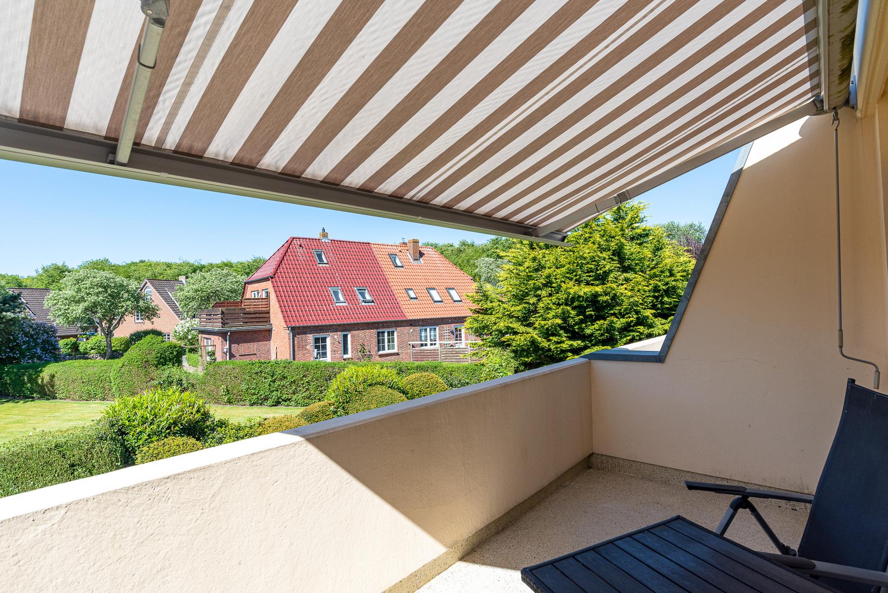 Diese helle Wohnung verfügt außerdem noch über einen sonnigen Südwestbalkon mit Sitzmöbeln und Markise.