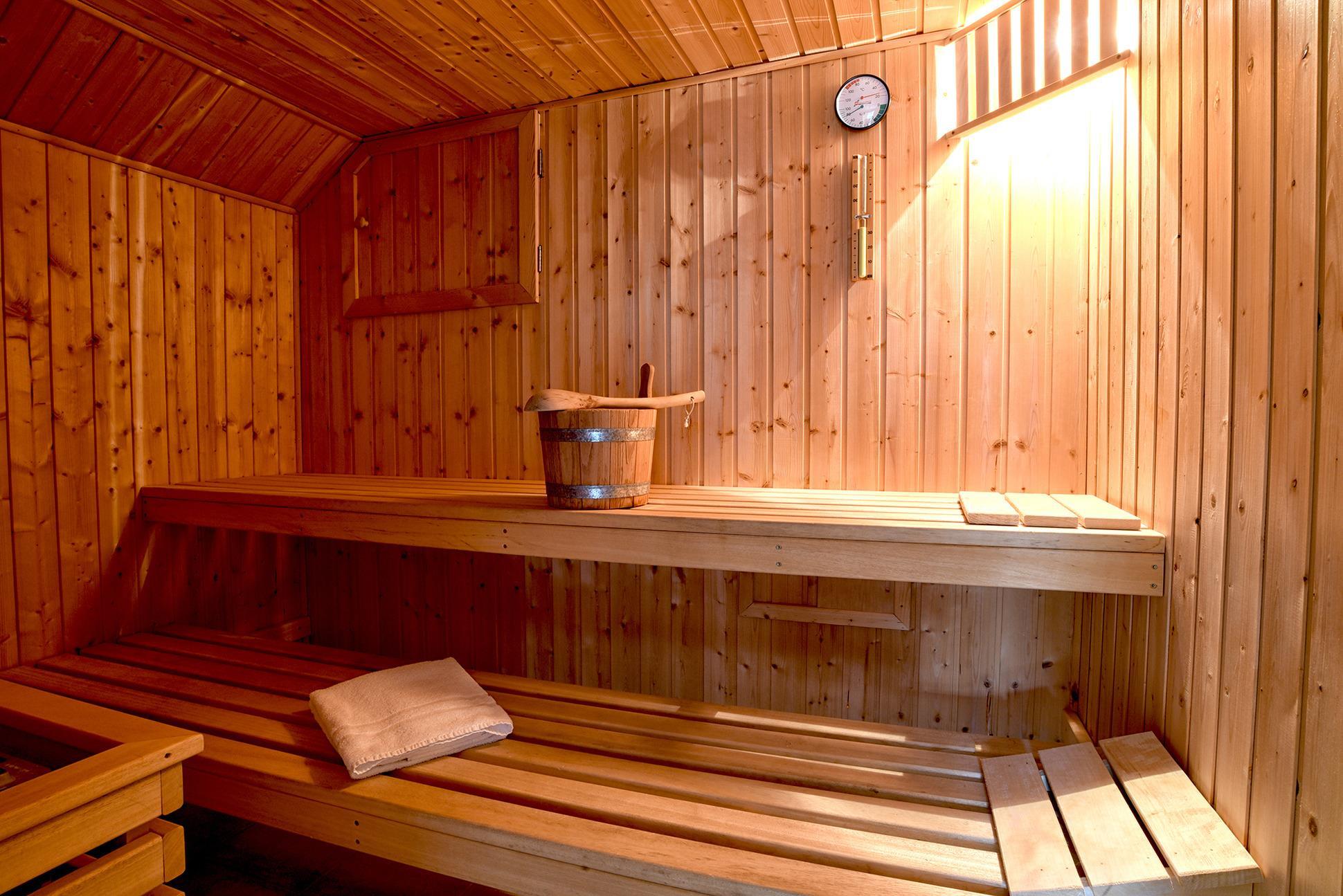 Ein Duschbad befindet sich ebenfalls im 2. OG. Die Besonderheiten sind die Sauna und der elektrische Ofen in der Wohnung.