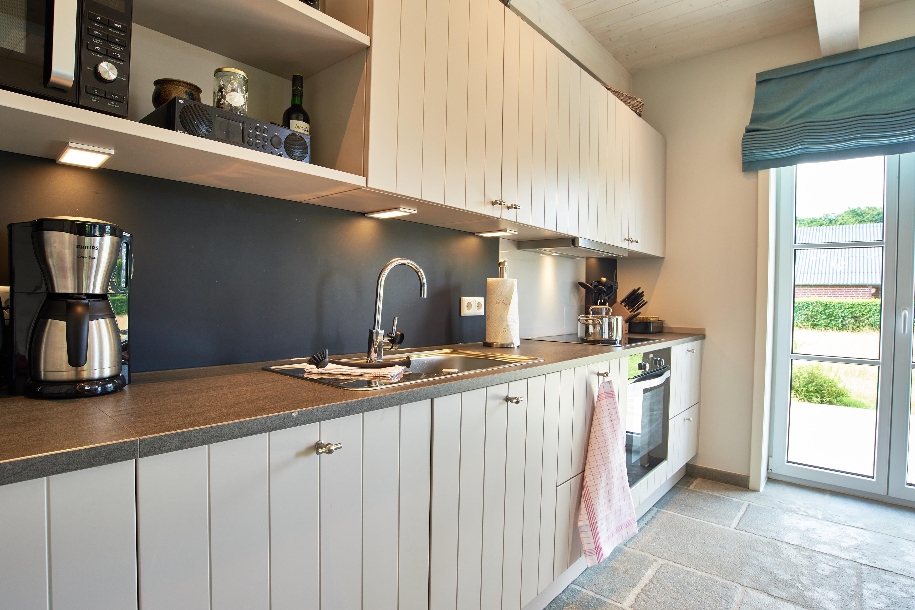Die DHH ist ca. 110 qm groß und bietet 4 Schlafzimmer für insgesamt 6 Personen. Zwei helle freundliche Badezimmer mit Duschbereich sorgen dafür, dass es am Morgen nicht zu Wartezeiten kommt. Im gemütlich eingerichteten Wohn- Esszimmer befindet sich die modern eingerichtete Küche in der sie alles finden, was für einen gelungenen Urlaub nötig ist. Ein Mylinkachelofen, der mit Bioethanol befeuert wird, gehört ebenfalls zur Ausstattung des Wohnzimmers. Von der Küche aus haben Sie Zugang zur Terrasse. Zur Küche gehört ein Hauswirtschaftsraum mit Waschmaschine und Trockner. Im 1. Obergeschoss befinden sich drei Schlafzimmer (1 x Doppelbett, 2 x Einzelbett und 1 x Einzelbett) sowie das große Badezimmer. Das zweite Badezimmer ist im Erdgeschoss, in dem sich ein weiteres Schlafzimmer mit Einzelbett befindet. Im Dachgeschoss befindet sich eine Sauna für die kalten Tage. Dieses Haus ist somit gerade für große Familien gut geeignet. Ein PKW-Stellplatz befindet sich direkt am Haus.