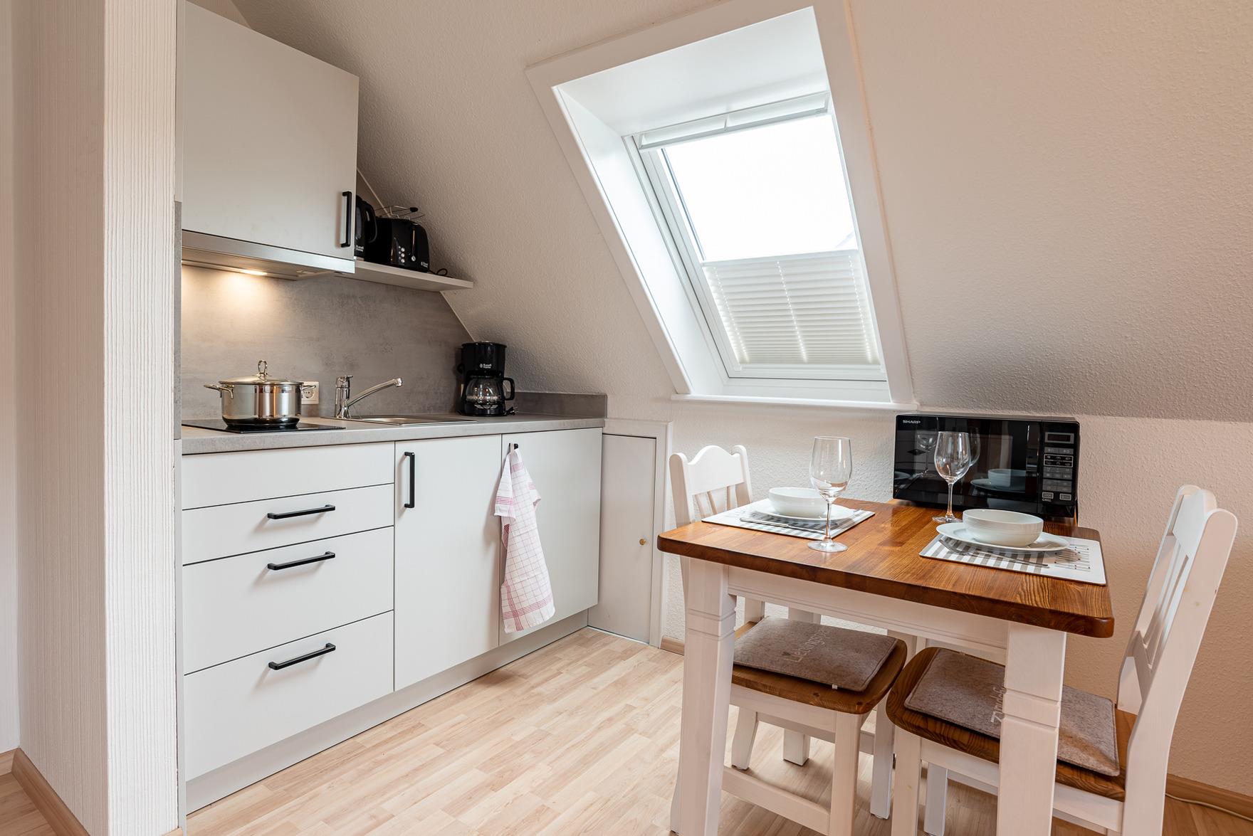 Diese ruhig gelegene und modern eingerichtete Wohnung liegt im 1. Stock und ist nur ca. 10 Gehmin. vom Sandwall und Kurmittelhaus entfernt.