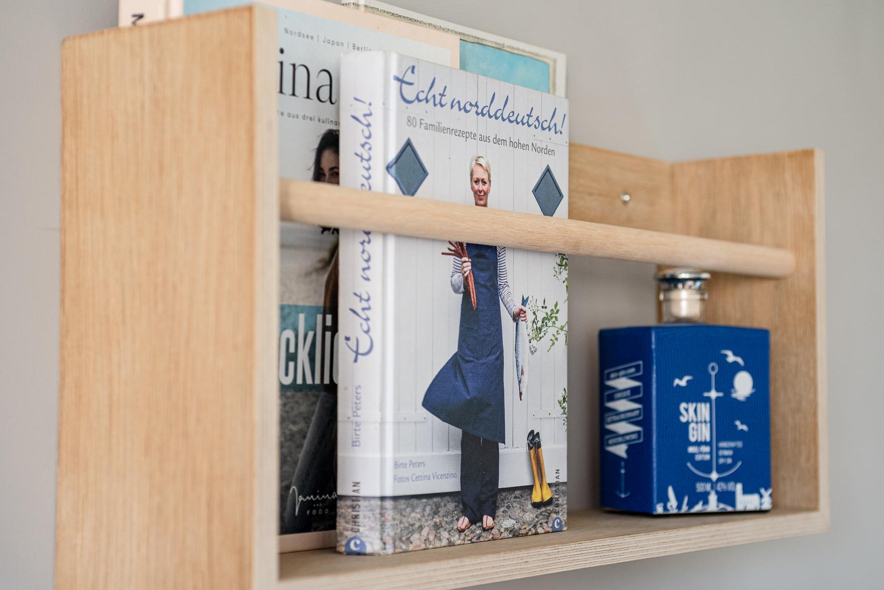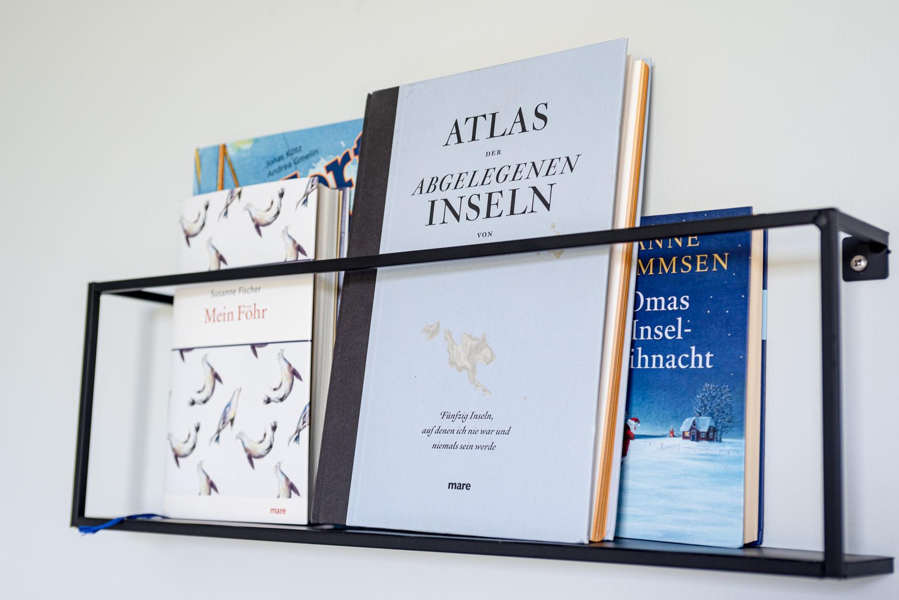 Die Wohnung verfügt über ein separates Schlafzimmer mit einem Doppelbett (1,80m x 2,00m) und einem Einzelbett (0,80m x 2,00m), das als zusätzliche Ebene über dem Doppelbett angebracht ist. Von hier aus haben Sie einen herrlichen Blick auf den Flugplatz von Wyk. Das Badezimmer ist stilvoll in passenden Farben gehalten und bietet eine große Dusche mit Regendusche sowie eine Toilette.