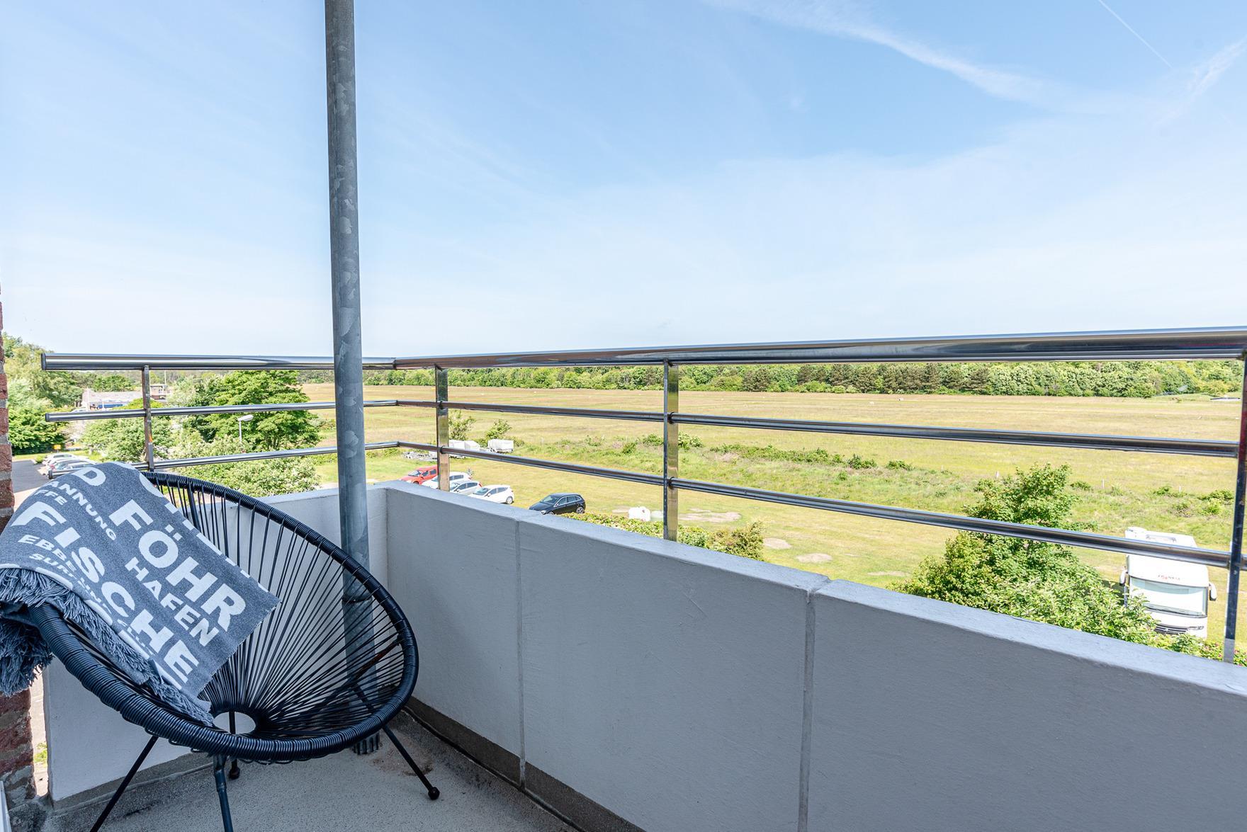 Diese schön gelegene und modern eingerichtete Wohnung liegt direkt am Fluplatz und verfügt über zwei Balkone. Vom Seitenbalkon kann man direkt aufs Meer gucken.