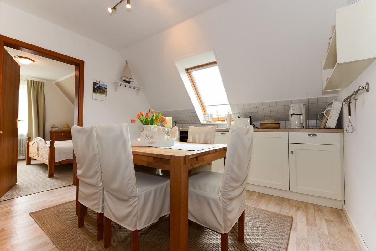 Die helle Atmosphäre der Ferienwohnung fördert gemeinsames Kochen und geselliges Beisammensein. Moderne Ausstattung sorgt für ein angenehmes Kocherlebnis im Urlaub. Das Wohnzimmer bietet komfortable Sitzmöglichkeiten zum Entspannen, während die drei liebevoll eingerichteten Schlafzimmer für erholsamen Schlaf sorgen. Ein neues Duschbad mit WC und die kostenlose Nutzung der Waschmaschine erhöhen den Komfort. Diese Ferienwohnung ist ideal für Familien oder Freundesgruppen, die einen entspannten Urlaub auf der Insel Föhr genießen möchten.
