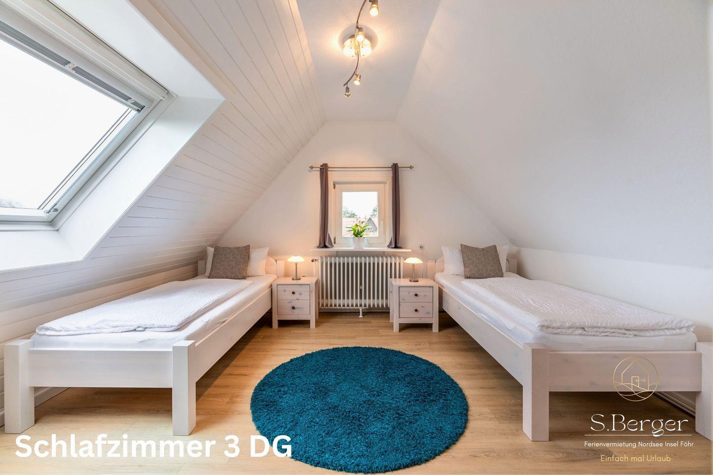 Das Dachgeschoss (leicht steilere Treppe) bietet somit einen idealen Rückzugsort für die jüngeren Gäste oder für jene, die in Ruhe ein Buch lesen möchten. Die helle und freundliche Gestaltung lädt zum Verweilen ein und lässt der Fantasie freien Lauf. Ob beim Schmökern in spannenden Geschichten oder beim kreativen Spielen, hier können Kinder sich in ihrer eigenen kleinen Welt entfalten. Ein perfekter Ort, um nach einem aufregenden Tag am Strand zur Ruhe zu kommen und die Erlebnisse Revue passieren zu lassen. Die Kombination aus Praktikabilität und Gemütlichkeit macht diesen Raum zu einem Highlight der Ferienwohnung, in dem sich kleine und große Gäste gleichermaßen wohlfühlen können.