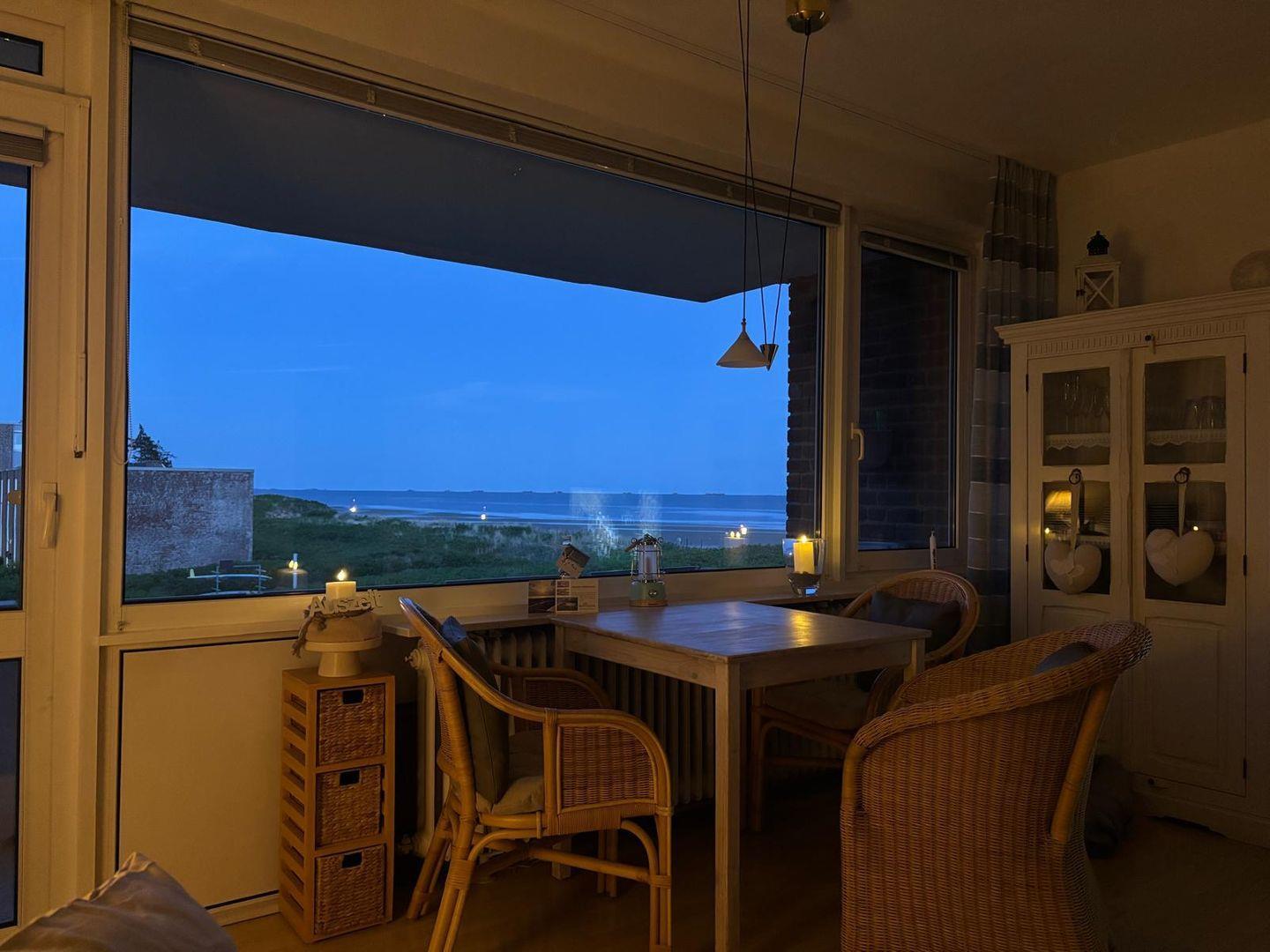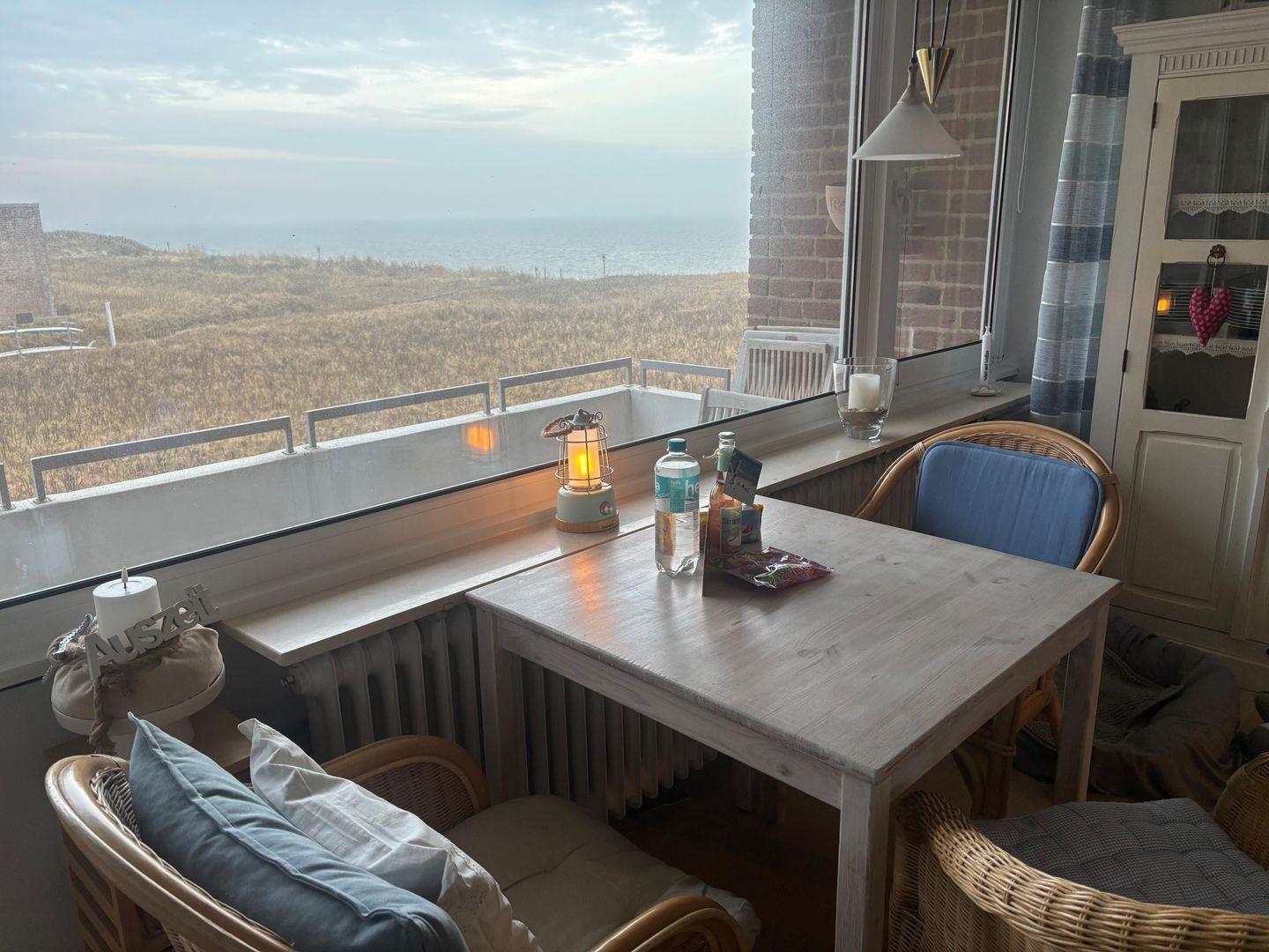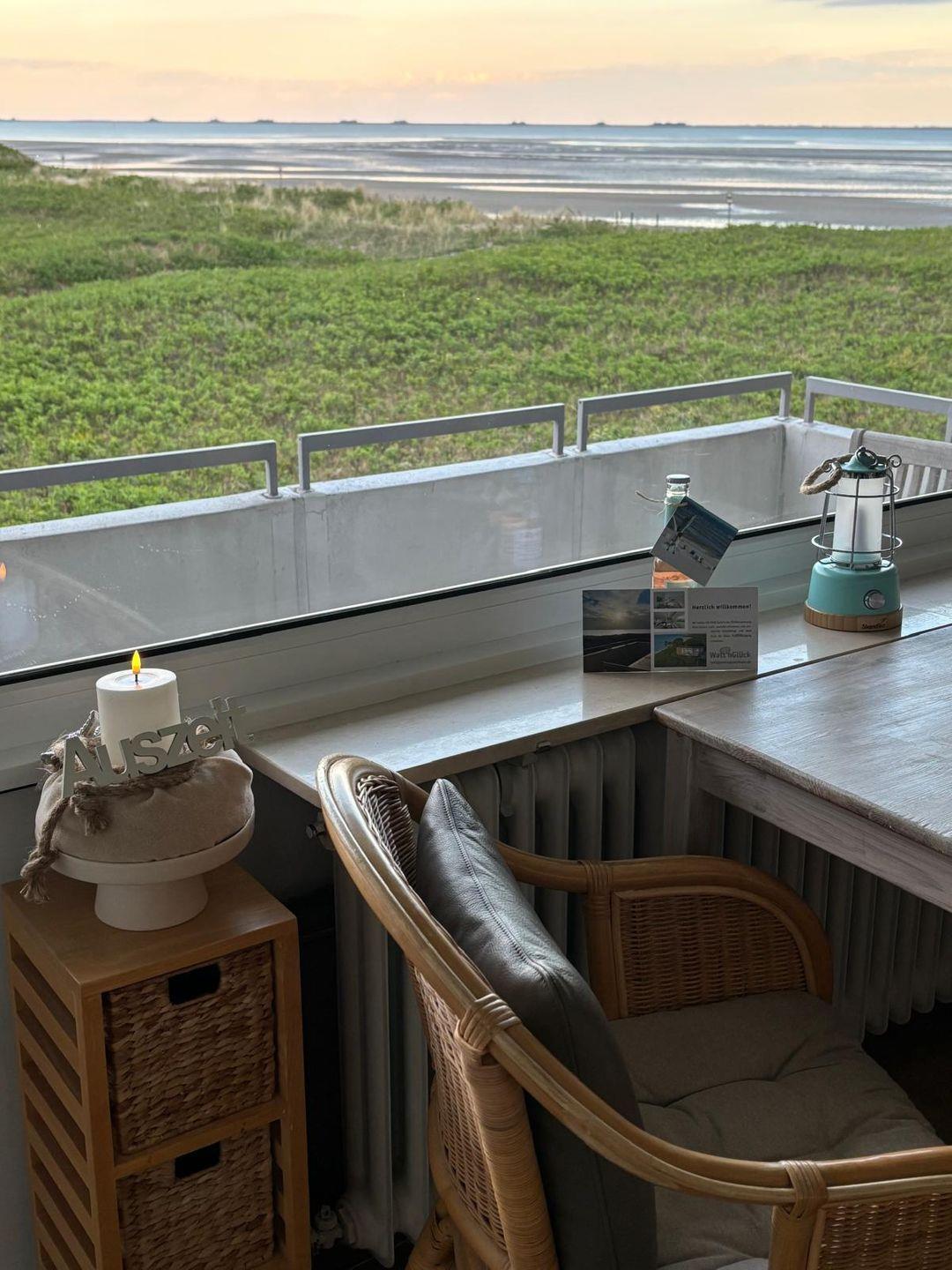 Egal ob vom Ostbalkon, vom Esstisch und auch vom Sofa haben Sie den kompletten freien Meerblick auf die Halligen.