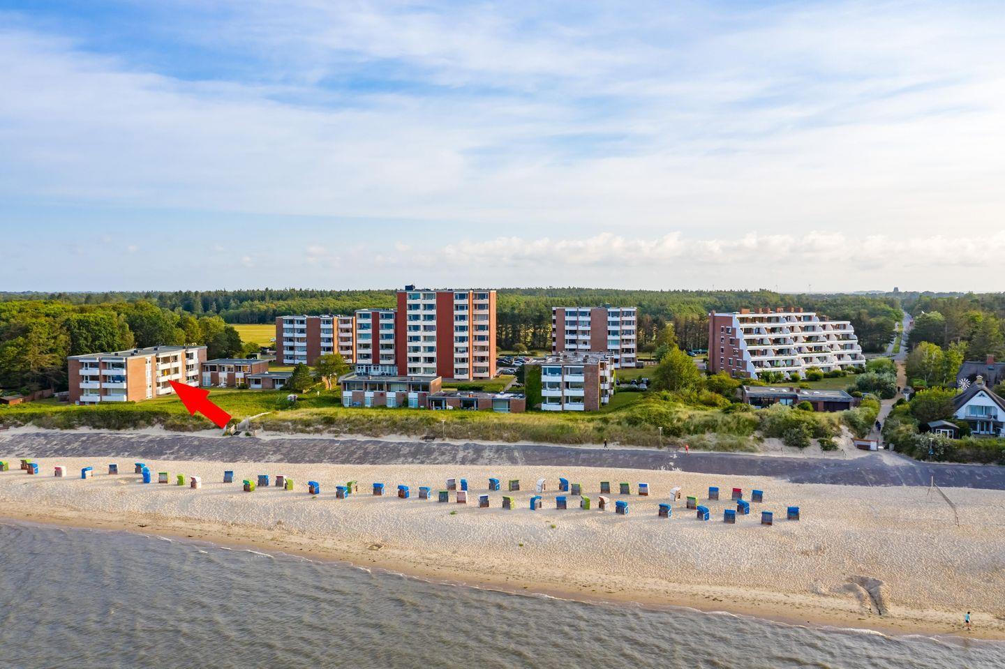 Unser Ferienwohnung mit tollem Meerblick liegt in der zweitenEtage einer schönen Wohnanlage am beliebten Südstrand. Der Strand liegt Ihnen zu Füßen.