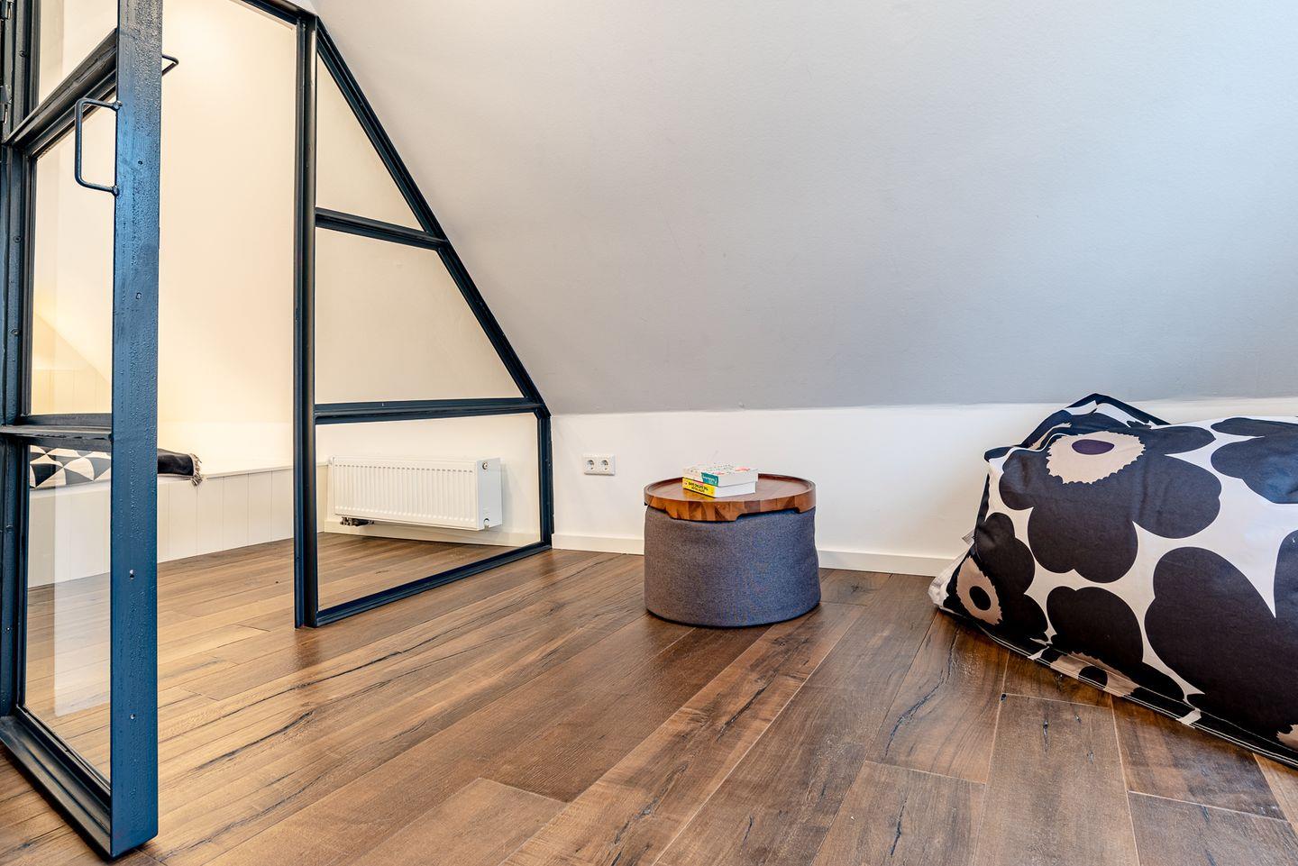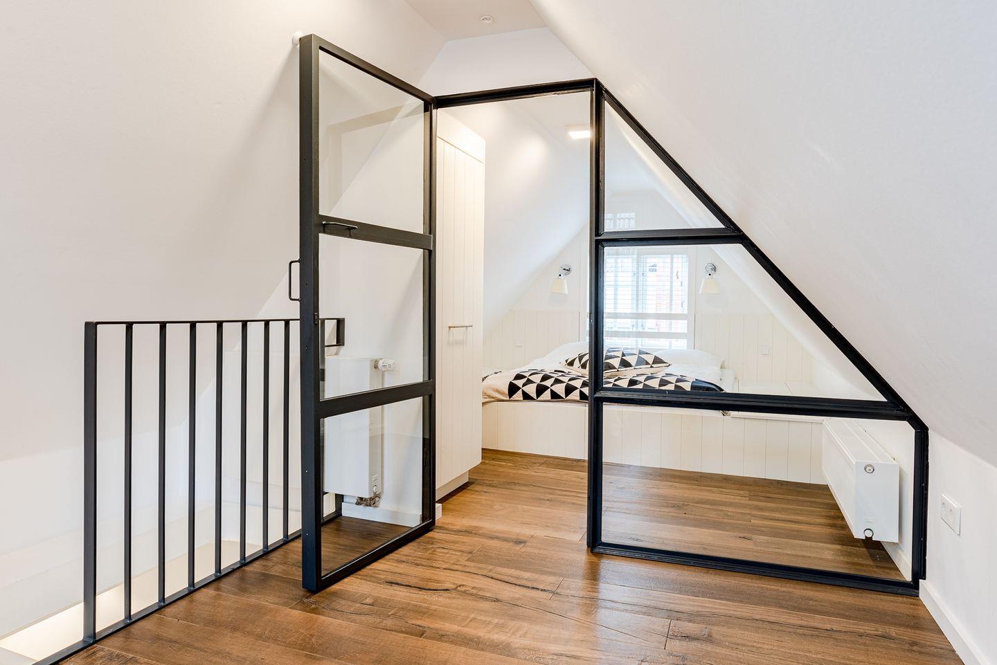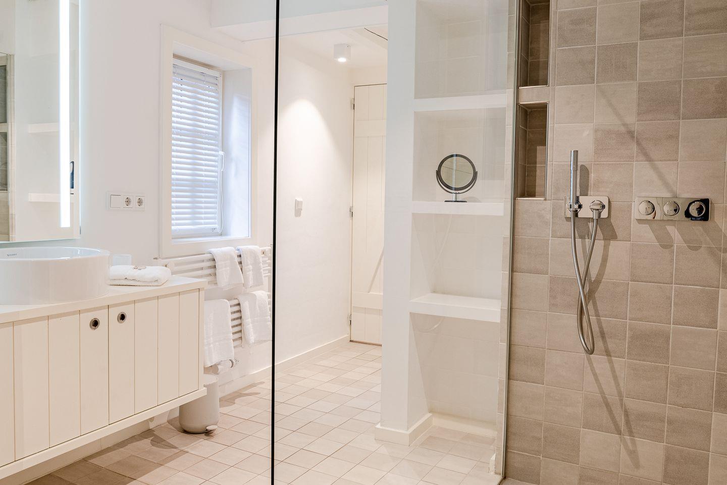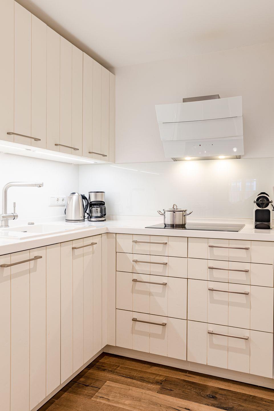 Durch die mit Efeu behangene Fassade gelangen Sie in den kleinen Flur. Dort finden Jacken und Schuhe genug Platz. In dem kombinierten Wohn-/Esszimmer mit halboffener Küche und Schlafsofa befindet sich der Esstisch mit Platz für bis zu vier Personen. Ebenfalls im Erdgeschoss befindet sich das Bad mit einer großzügigen, bodengleichen Dusche, der hauseigenen Sauna und einer Waschmaschine. Im Obergeschoss befindet sich ein Schlafzimmer mit Doppelbett.