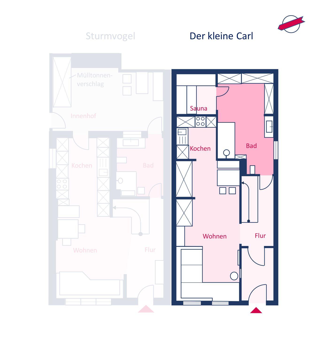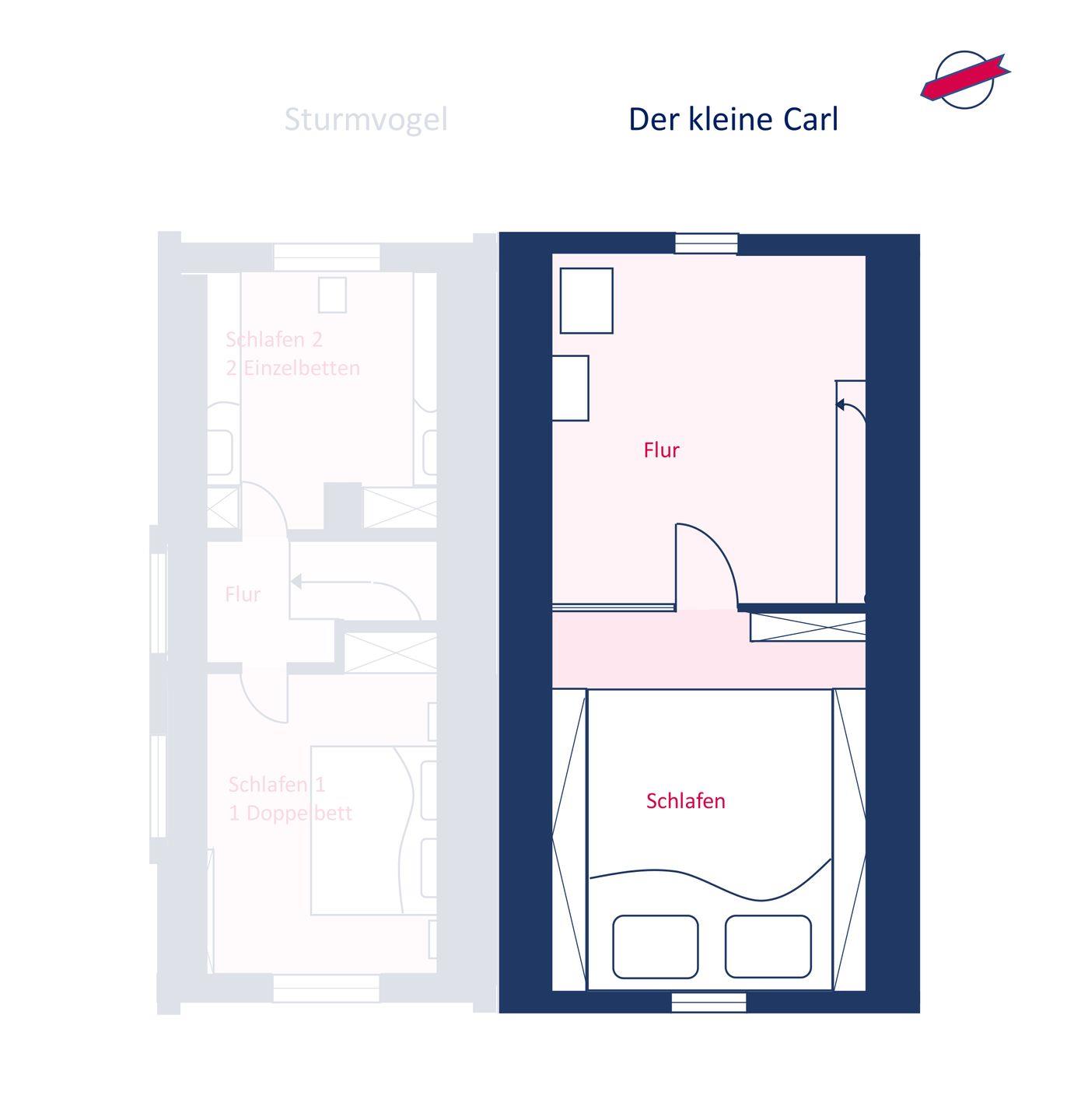 Der kleine Carl wurde mit sehr viel Liebe zum Detail eingerichtet und ausgestattet und befindet sich in einer ruhigen Seitengasse der Wyker Fußgängerzone. Bereits die Fassade des Hauses überzeugt mit ihrem einzigartigen Charme. Hier treffen moderne und zeitgemäße Ausstattung und der Charme eines kleinen Stadthauses aufeinander. Ab dem 05.01.2026 ist die Mitnahme von bis zu zwei Hunden gestattet.